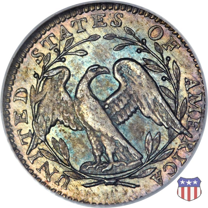 Testa di Lady Liberty volta a destra, con lunghi capelli sciolti (Flowing Hair). In alto la scritta LIBERTY con ai lati 15 stelle, 8 a sinistra e sette a destra, in basso la data. Aquila di fronte, in piedi sulle nuvole ad ali spiegate, all'interno di una corona di palme e rami d'ulivo. Nel giro UNITED STATES OF AMERICA. Nessuna denominazione, né sulle facce né sul contorno, appare sulle monete che, coniate a Philadelphia, non presentano segni di zecca.