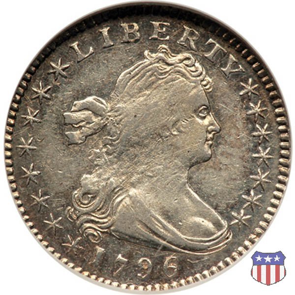 Busto drappeggiato (Draped Bust) di Liberty volto a destra, con parte dei capelli raccolti da un fiocco. In alto la scritta LIBERTY, in basso la data. Ai lati un numero variabile di stelle: sono 15 nel 1796, 15, 16 o 13 nel 1797.