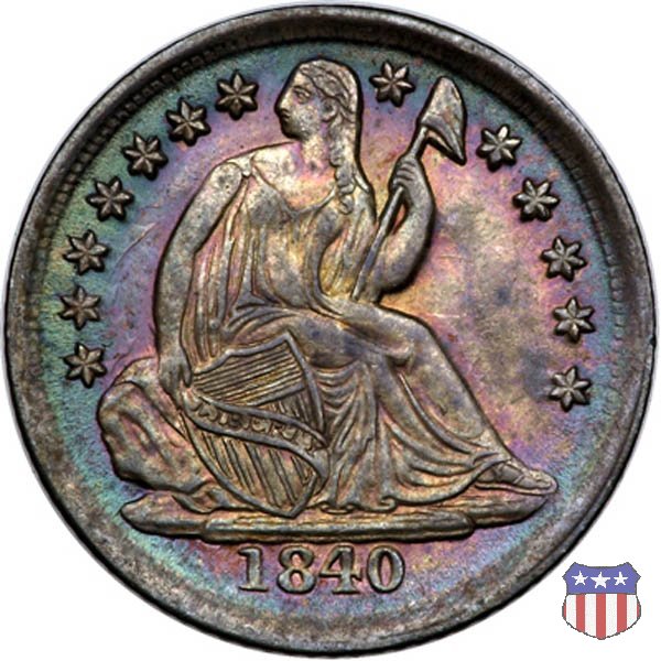 L'half dime disegnato da Christian Gobrecht, porta al dritto la figura seduta di Lady Liberty da cui prende nome, vista per la prima volta sul dollaro 1836, e al rovescio il valore, scritto per la prima volta nella forma HALF DIME, all'interno di una corona. Ben quattro sono le varianti di questa moneta, che si distinguono per la presenza o meno delle stelle al dritto, di due frecce ai lati della data, della legenda UNITED STATES OF AMERICA che passa dal rovescio al dritto, per la forma della corona e, "dulcis in fundo", per una differenza di peso.