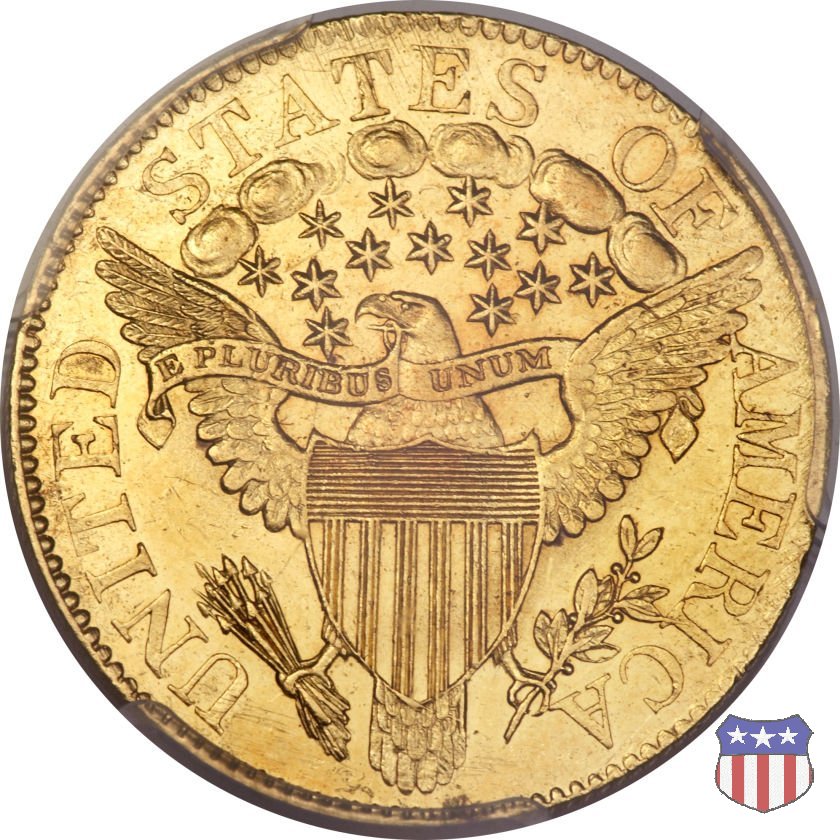 Per queste monete Scot mantenne invariato il disegno del dritto, sostituendo la piccola aquila al rovescio con la poderosa "Aquila araldica" (Heraldic Eagle) modellata sul Grande Sigillo (Great Seal) degli Stati Uniti, che era stato adottato nel 1782. Un disegno utilizzato per la prima volta sul "quarter eagle" nel 1796 (le "half eagles" di questo tipo datate 1795 sarebbero in realtà state coniate nel 1798) e che sarà ripreso piú volte negli anni seguenti, anche su monete di taglio e metallo diversi, fino a oggi.