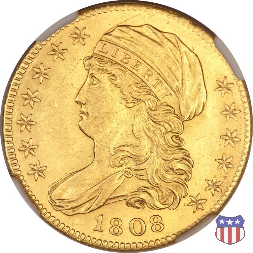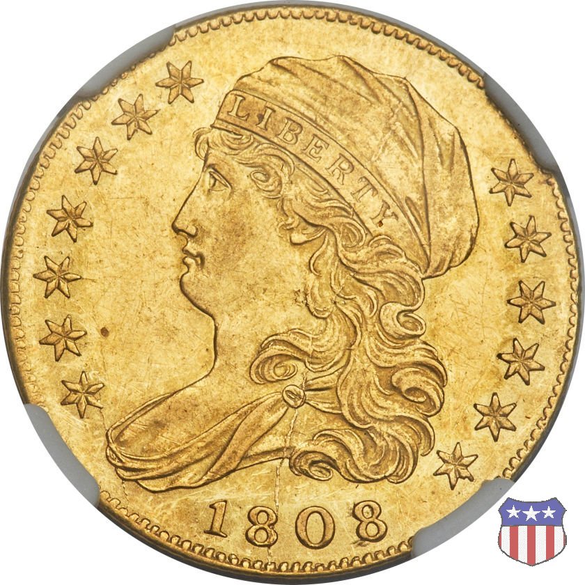 L'autore della mezza aquila "Capped Bust" (e di numerose altre monete) era un immigrato di origini bavaresi, Johann Matthias Reich (poi americanizzato in John Reich), che dopo aver lavorato come medaglista insieme a suo padre, era scappato dall'Europa nel 1800 per sfuggire alle guerre napoleoniche. Stabilitosi a Philadelphia, nel 1801, su raccomandazione del Presidente Jefferson, venne assunto alla Zecca. Ma la Zecca in quel momento non aveva bisogno di un incisore, e cosí gli furono affidate altre mansioni. Fu soltanto nel 1807 che divenne assistente dell'incisore-capo, Robert Scot, e subito gli fu affidata la realizzazione di nuove monete, in particolare il mezzo dollaro d'argento e la mezza aquila (5 dollari) d'oro, che erano le piú richieste dalle banche.
