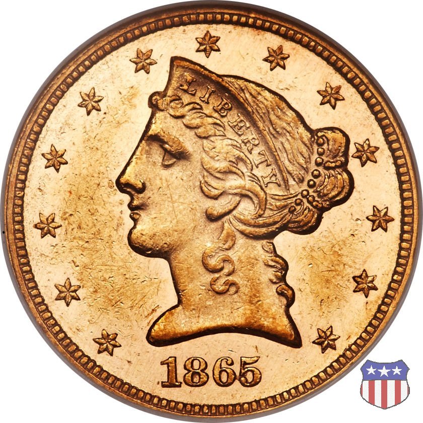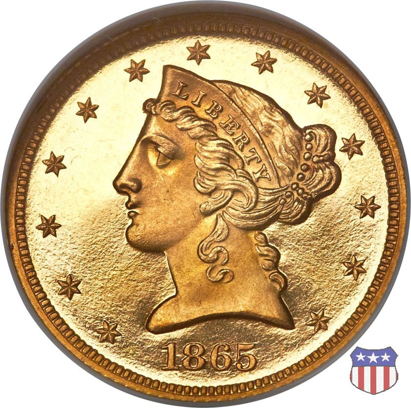 | 1865 Proof | US-12E/6-110 | Philadelphia | - | Christian Gobrecht | 25 | |||||||||||
