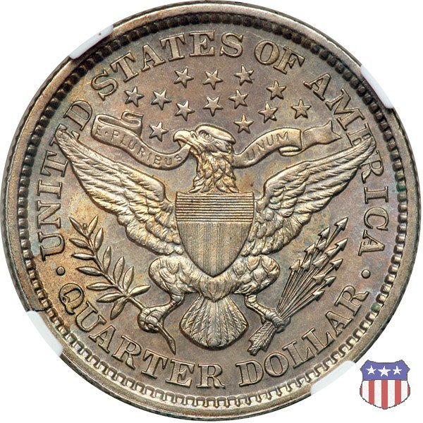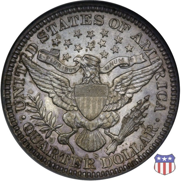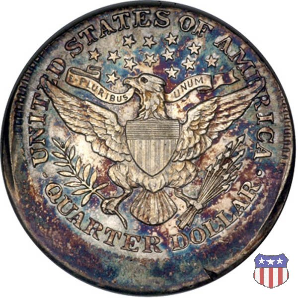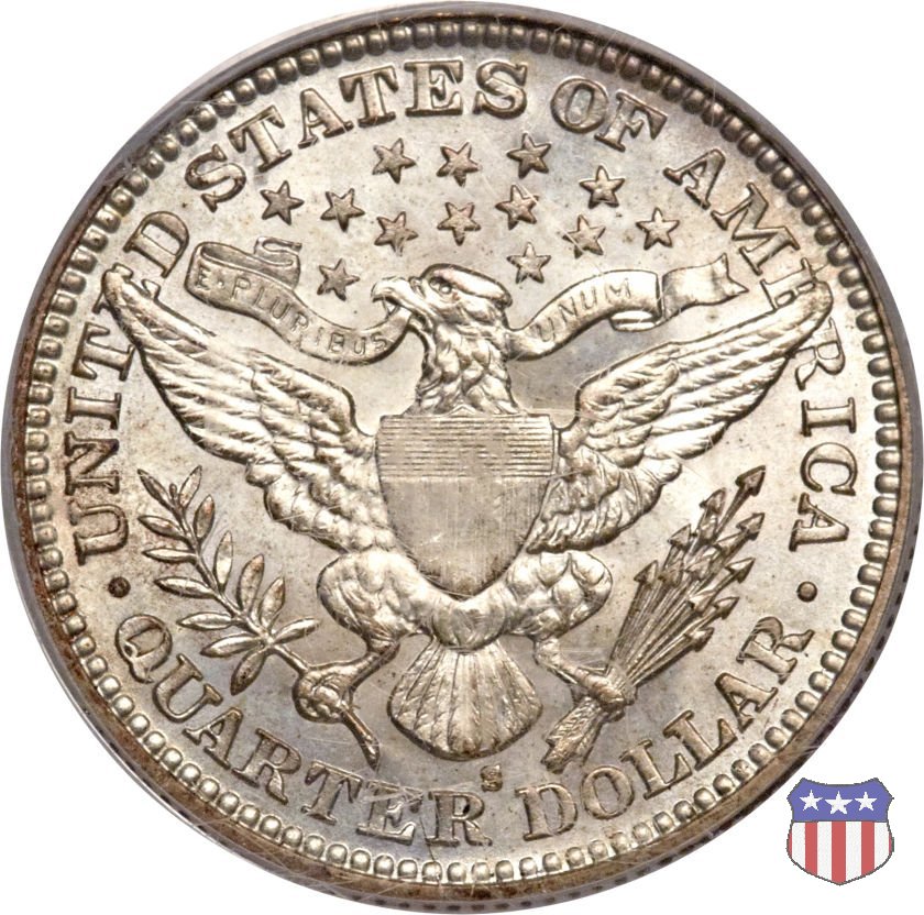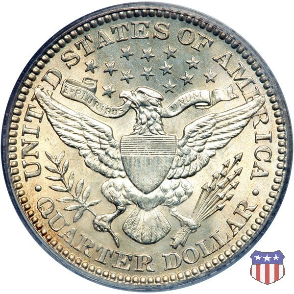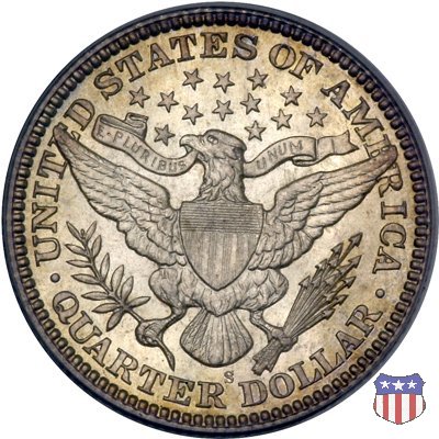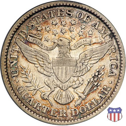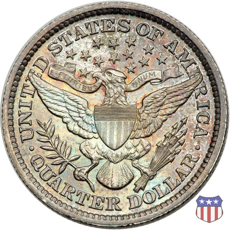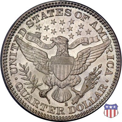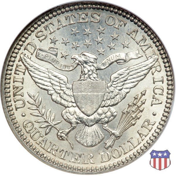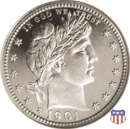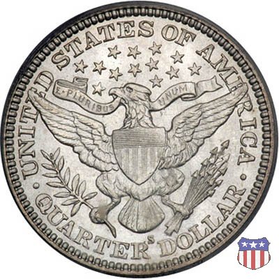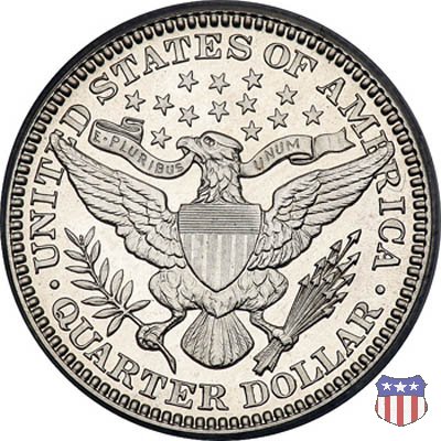 Charles Edward Barber, sesto "Chief Engraver" della Zecca degli Stati Uniti, succeduto nel ruolo a suo padre William nel 1879 e rimasto in carica per 38 anni, il periodo piú lungo nella storia della Zecca, ha legato il suo nome a una serie di monete in argento, dimes, quarters, e half dollars, coniate a partire dal 1892 e, ininterrottamente, fino al 1915 (half dollar) e 1916 (dime e quarter dollar). Sul dritto di tutte queste monete, fa bella mostra di sé una testa di Liberty, che Barber modellò nel piú puro stile classico, e che ricorda un po' quella del Morgan Dollar. Fu guidato in questa direzione dal Direttore della Zecca, Edward Leech, che espressamente gli richiese di fornire un ritratto che fosse somigliante al busto di Cerere che compariva sulle monete francesi dell'epoca. Al rovescio del quarto e del mezzo dollaro, compare un'aquila araldica, ispirata al Grande Sigillo degli Stati Uniti, dal disegno pressoché identico a quello già utilizzato su numerose monete, sia d'argento che d'oro, negli anni a cavallo tra la fine del XVIII e l'inizio del XIX secolo. Le monete, tutte entrate in circolazione nel 1892, incontrarono subito il favore del pubblico, meno quello dei numismatici, che si mostrarono alquanto delusi o, nel migliore dei casi, non si pronunciarono in merito. Le lodi, all'epoca, non furono molte, e bisognò attendere le successive generazioni di collezionisti perché le creazioni di Charles Barber iniziassero ad essere apprezzate come meritavano. Segno di zecca: - D Denver - O New Orleans - S San Francisco - senza segno Philadelphia | ||||||