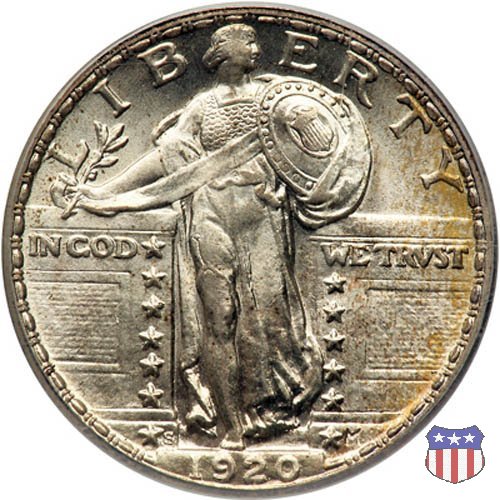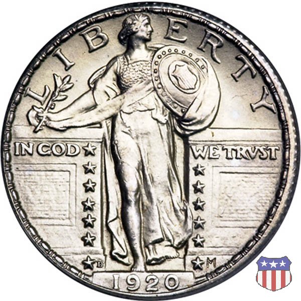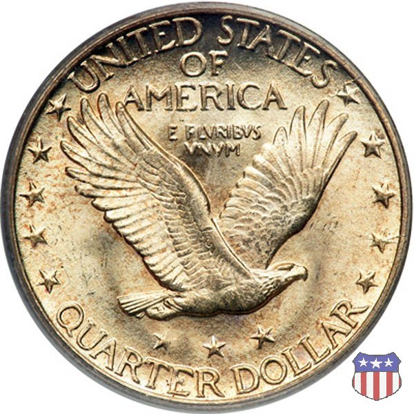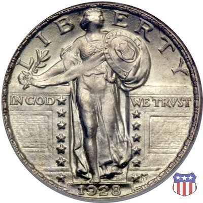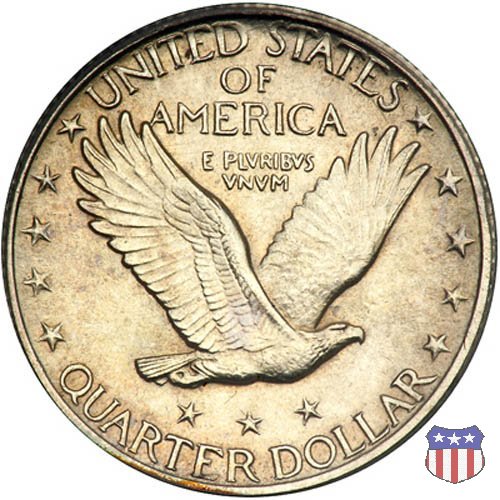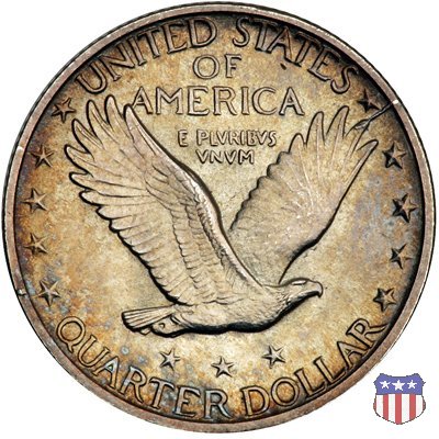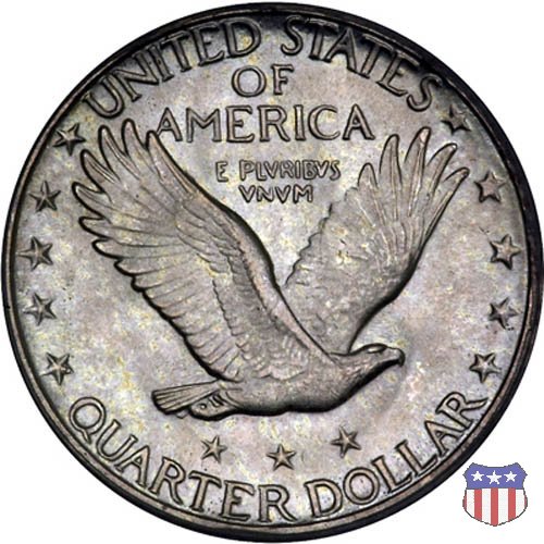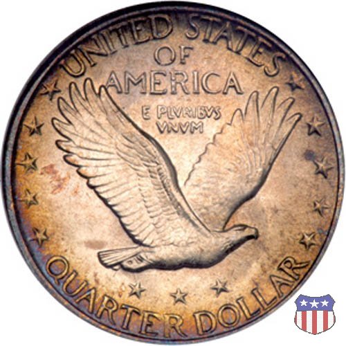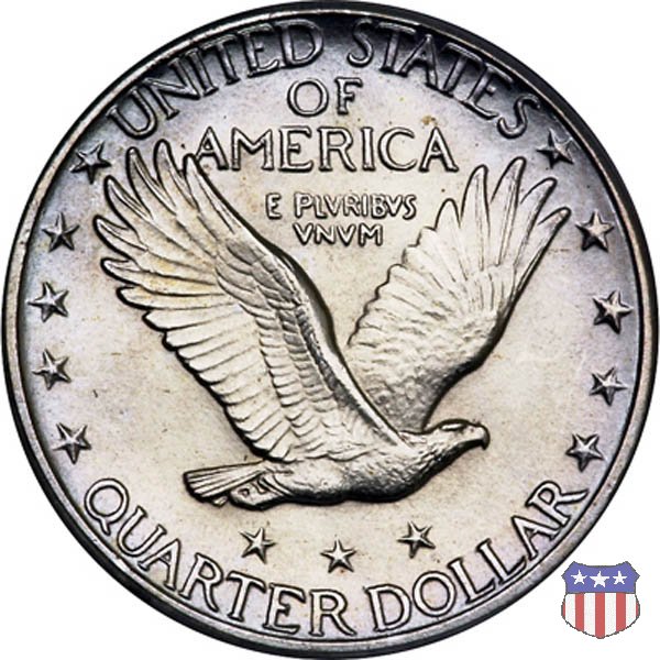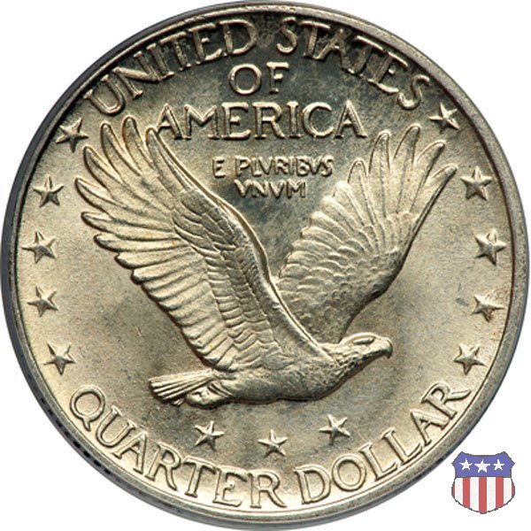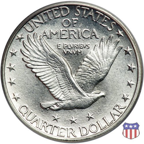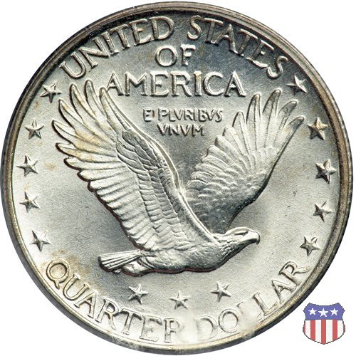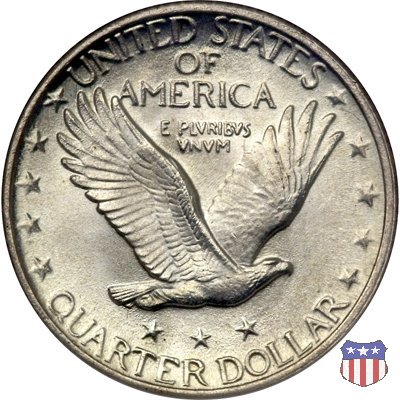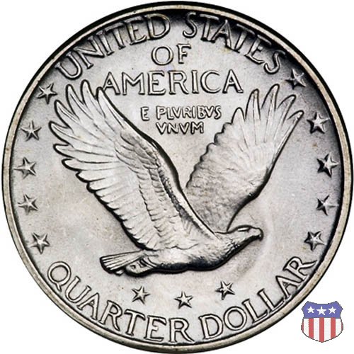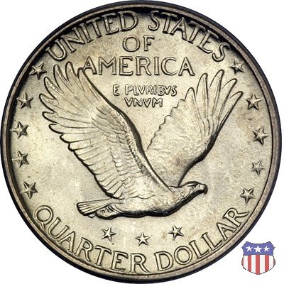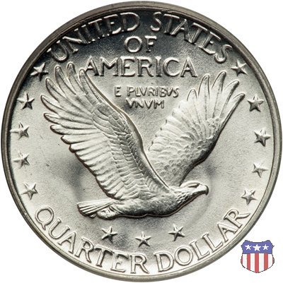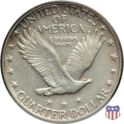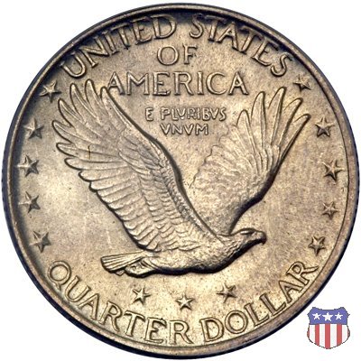 Appena un anno dopo la sua prima uscita, la "Standing Liberty" di Hermon MacNeil subí importanti modifiche, apportate dall'incisore-capo della Zecca, George Morgan. Il rovescio, prima appesantito dall'affollamento delle 13 stelle tra le legende, venne migliorato grazie a uno spostamento verso l'alto dell'aquila e a un diverso posizionamento delle stelle. E' questa modifica a dare il nome alla Variante 2 della moneta, nota come "Stars Below Eagle". Una modifica ancora piú importante riguardò il dritto, dove il seno di Liberty fu coperto da una sorta di corazza. La tradizione numismatica vuole che tale modifica sia stata dovuta alla pressione dell'opinione pubblica, scandalizzata dalla nudità, ma non è stato trovato alcun documento che supporti questa storia. La decisione fu probabilmente presa su richiesta del Dipartimento del Tesoro: una Liberty piú "guerriera", quale appariva rivestita da una corazza, poteva anch'essa servire a sensibilizzare un'America da poco entrata nella Prima Guerra Mondiale. Furono inoltre modificati gli stampi, resi parzialmente convessi perché, venne spiegato, in questo modo avrebbero lavorato meglio, e la qualità del conio ne avrebbe tratto giovamento. In realtà, avvenne esattamente il contrario. Molte monete del secondo tipo presentano infatti una scarsa definizione in molti dettagli, in particolare nei capelli e nel viso di Lady Liberty: le monete meglio riuscite vengono segnalate come "Full Head". Un'ultima modifica fu apportata nel 1925. MacNeil aveva posto la data in una posizione che la rendeva illeggibile dopo solo pochi anni di circolazione. Con questa modifica, il rilievo che ospitava la data venne tagliato via, la data stessa posta all'interno della depressione conseguente ("Recessed Date"), e questo fu sufficiente a preservarla nelle monete emesse dal 1925 al 1930. Lo "Standing Liberty Quarter Dollar" di Hermon MacNeil, probabilmente la piú bella moneta di questa tipologia, ebbe vita breve. Dopo appena 15 anni la sua produzione venne a cessare, per far posto al "Washington Quarter" emesso nel 1932 per celebrare il bicentenario della nascita del primo Presidente degli Stati Uniti, il cui ritratto continua a campeggiare ancora oggi sul dritto della moneta. Segno di zecca: - D Denver - S San Francisco - senza segno Philadelphia | ||||||||||||