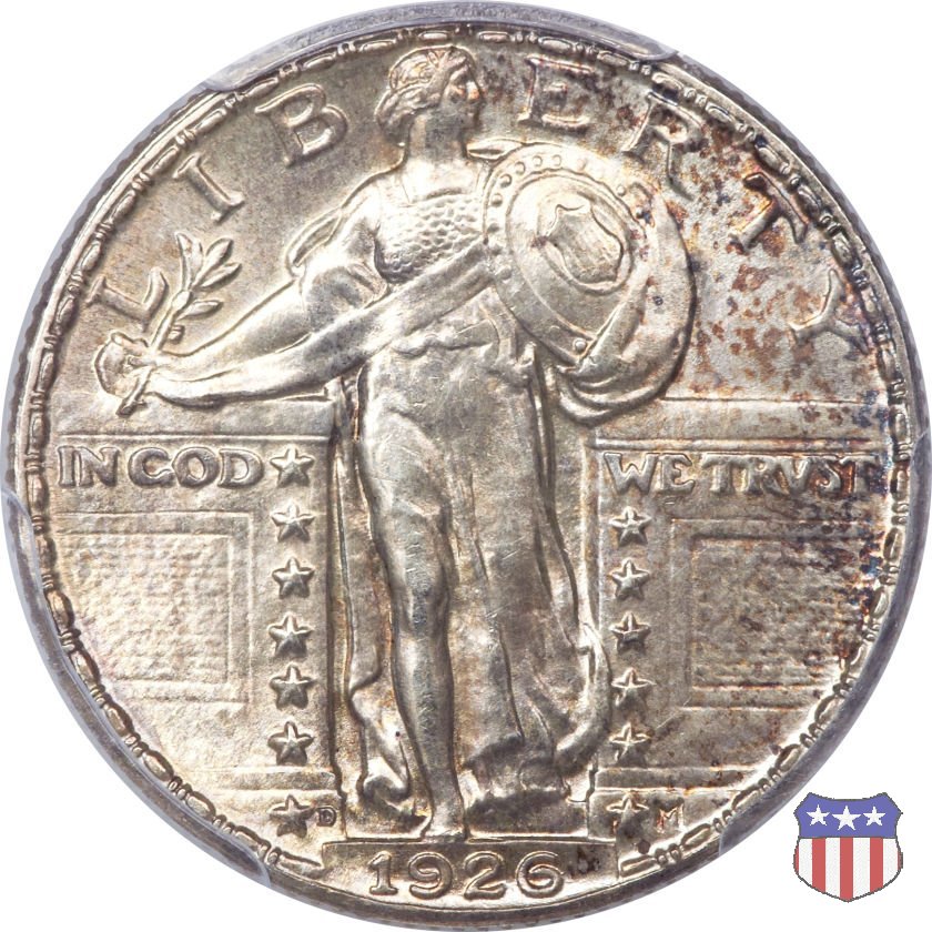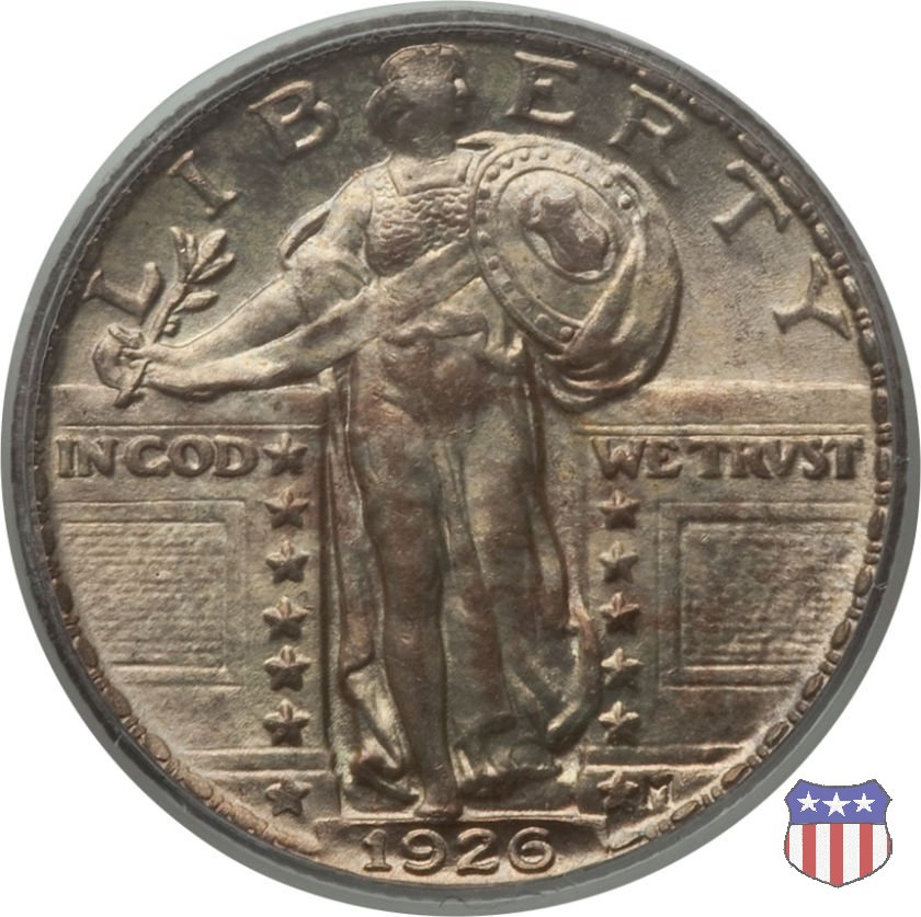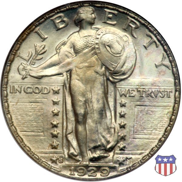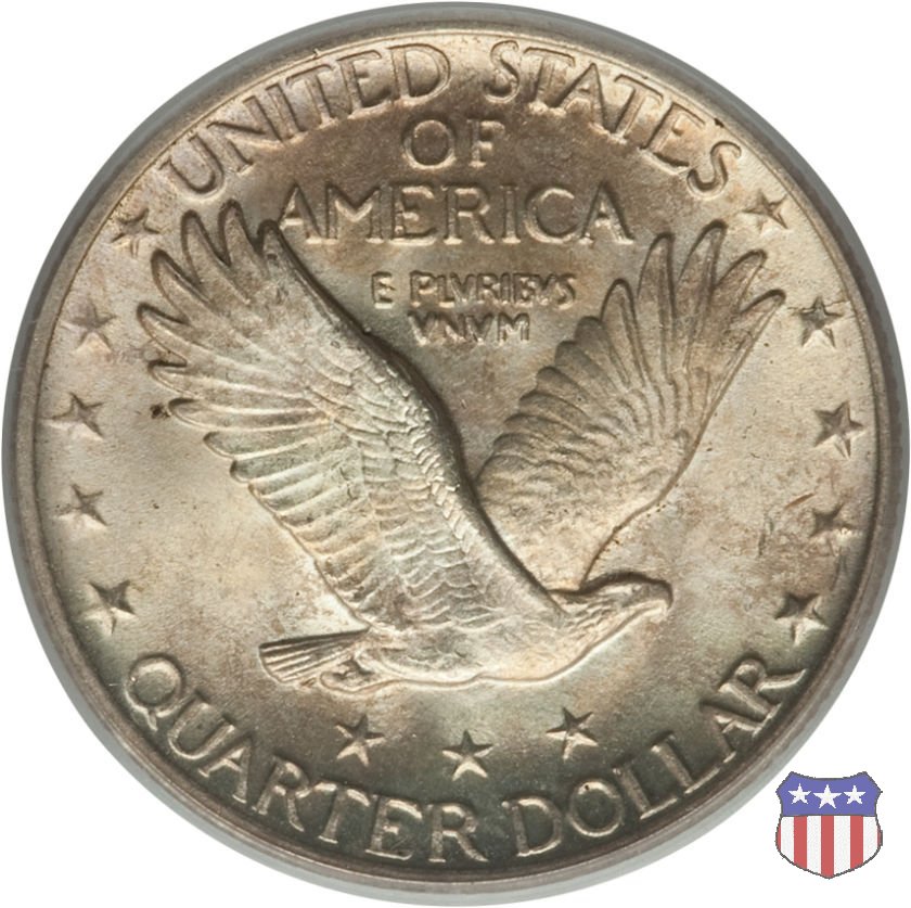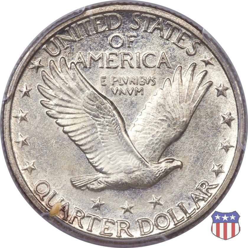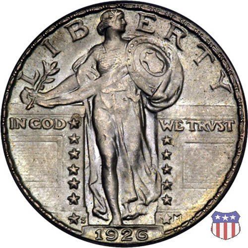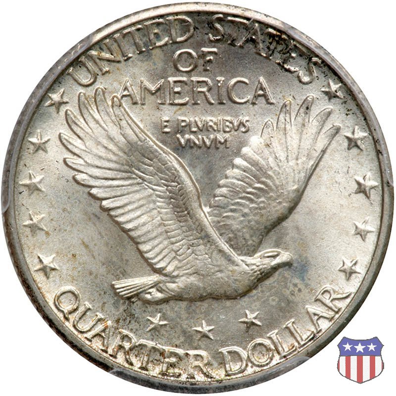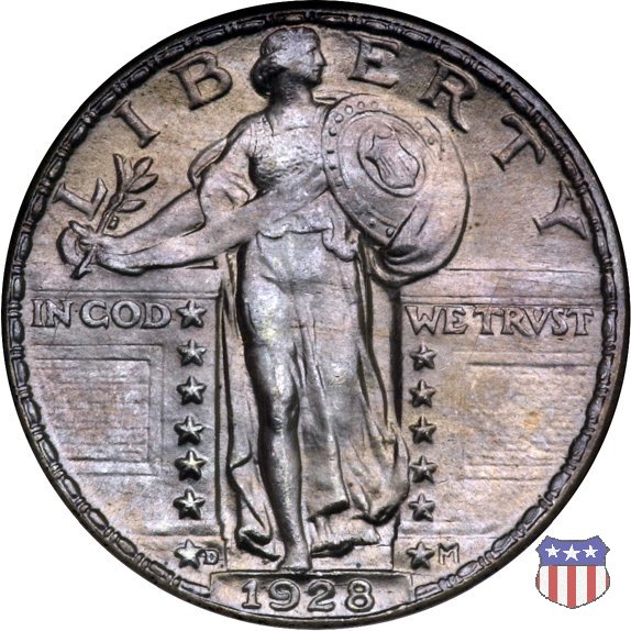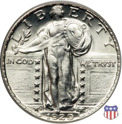 Appena un anno dopo la sua prima uscita, la "Standing Liberty" di Hermon MacNeil subí importanti modifiche, apportate dall'incisore-capo della Zecca, George Morgan. Il rovescio, prima appesantito dall'affollamento delle 13 stelle tra le legende, venne migliorato grazie a uno spostamento verso l'alto dell'aquila e a un diverso posizionamento delle stelle. E' questa modifica a dare il nome alla Variante 2 della moneta, nota come "Stars Below Eagle". Una modifica ancora piú importante riguardò il dritto, dove il seno di Liberty fu coperto da una sorta di corazza. La tradizione numismatica vuole che tale modifica sia stata dovuta alla pressione dell'opinione pubblica, scandalizzata dalla nudità, ma non è stato trovato alcun documento che supporti questa storia. La decisione fu probabilmente presa su richiesta del Dipartimento del Tesoro: una Liberty piú "guerriera", quale appariva rivestita da una corazza, poteva anch'essa servire a sensibilizzare un'America da poco entrata nella Prima Guerra Mondiale. Furono inoltre modificati gli stampi, resi parzialmente convessi perché, venne spiegato, in questo modo avrebbero lavorato meglio, e la qualità del conio ne avrebbe tratto giovamento. In realtà, avvenne esattamente il contrario. Molte monete del secondo tipo presentano infatti una scarsa definizione in molti dettagli, in particolare nei capelli e nel viso di Lady Liberty: le monete meglio riuscite vengono segnalate come "Full Head". Un'ultima modifica fu apportata nel 1925. MacNeil aveva posto la data in una posizione che la rendeva illeggibile dopo solo pochi anni di circolazione. Con questa modifica, il rilievo che ospitava la data venne tagliato via, la data stessa posta all'interno della depressione conseguente ("Recessed Date"), e questo fu sufficiente a preservarla nelle monete emesse dal 1925 al 1930. Lo "Standing Liberty Quarter Dollar" di Hermon MacNeil, probabilmente la piú bella moneta di questa tipologia, ebbe vita breve. Dopo appena 15 anni la sua produzione venne a cessare, per far posto al "Washington Quarter" emesso nel 1932 per celebrare il bicentenario della nascita del primo Presidente degli Stati Uniti, il cui ritratto continua a campeggiare ancora oggi sul dritto della moneta. Segno di zecca: - D Denver - S San Francisco - senza segno Philadelphia | ||||||||||||