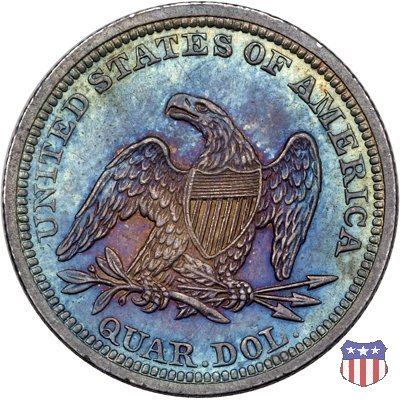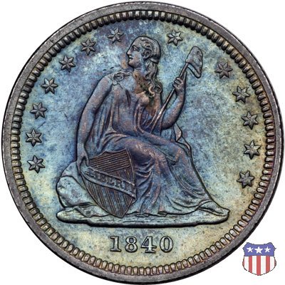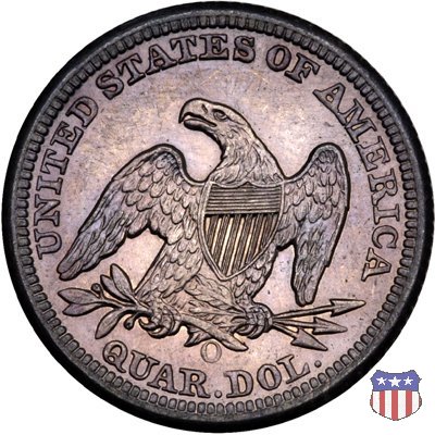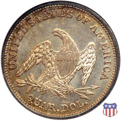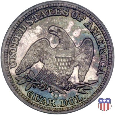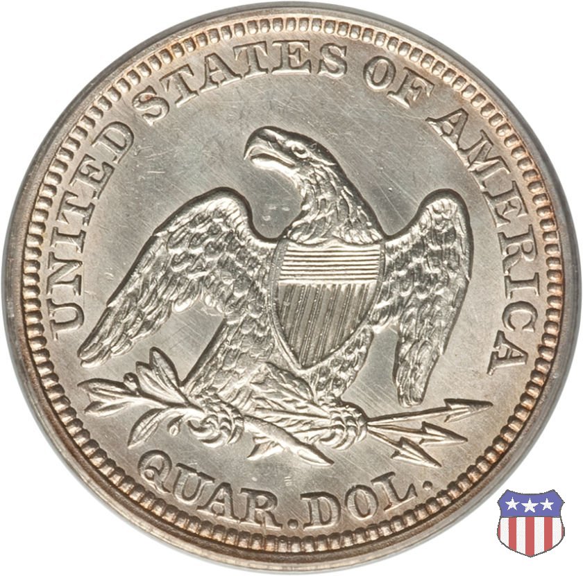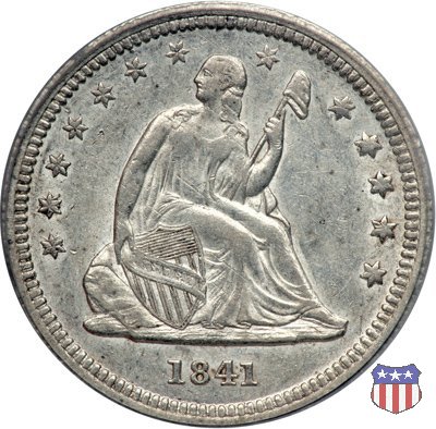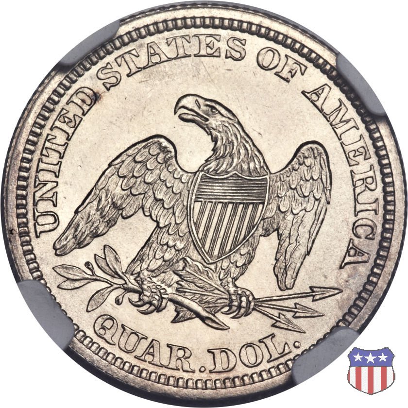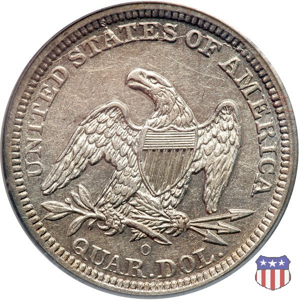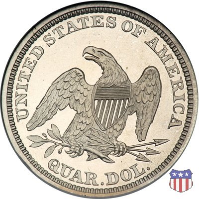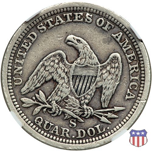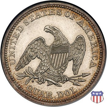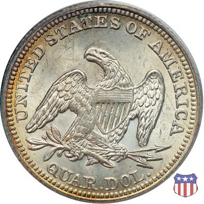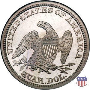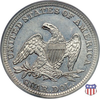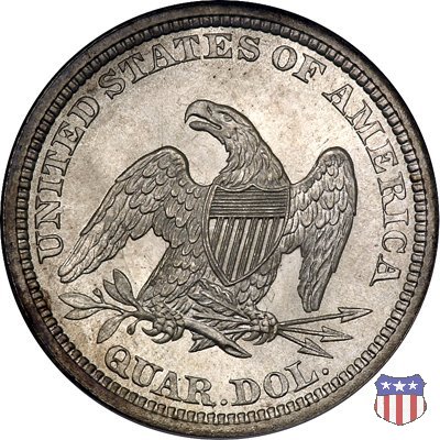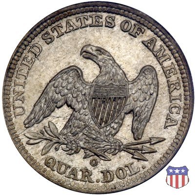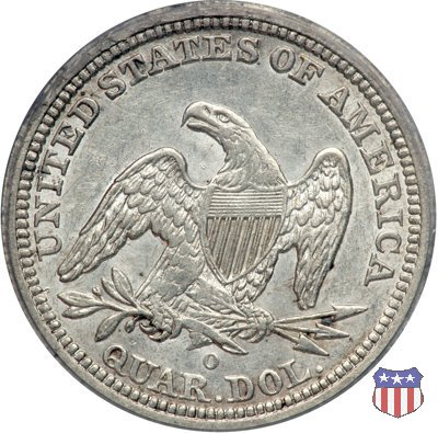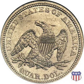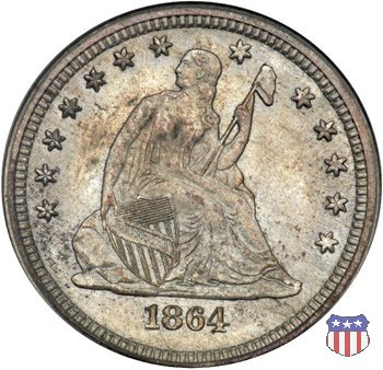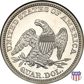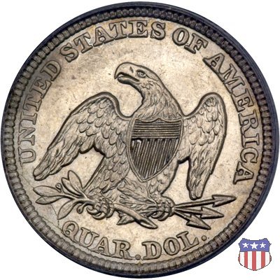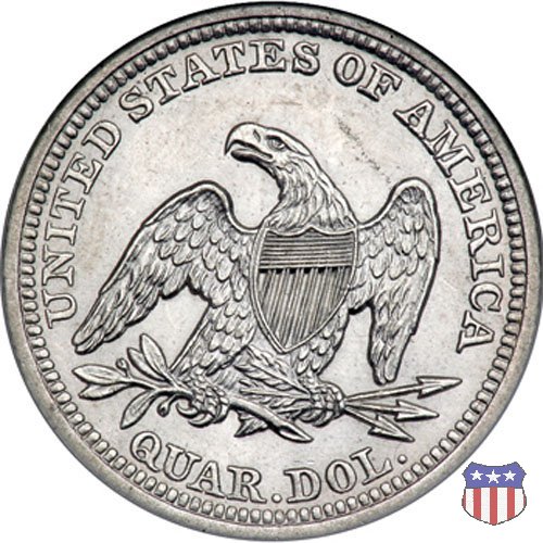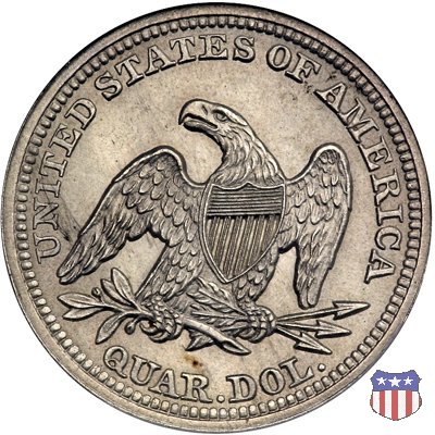 Il quarto di dollaro disegnato da Christian Gobrecht, porta al dritto la figura seduta di Lady Liberty da cui prende nome, vista per la prima volta sul dollaro 1836, e già usata sul dime dal 1837, e al rovescio quell'aquila con lo scudo sul petto che lo storico dell'arte Cornelius Vermeule descrisse come "la protezione di un arbitro di baseball". Ben cinque sono le varianti di questa moneta, che si distinguono per la presenza o meno del motto IN GOD WE TRUST, di due frecce ai lati della data, di raggi di sole al rovescio e, "dulcis in fundo", per una differenza di peso. La Variante 1, conosciuta come "No Motto Above Eagle", e coniata dal 1838 al 1853 al peso di 6,68 grammi, e dal 1856 al 1866 con un peso ridotto a 6,22 grammi (Variety 1 Resumed) è, dal punto di vista grafico, la piú semplice. Non c'è ancora il motto, non ci sono le frecce ai lati della data, che stanno a indicare il cambio di peso della moneta, e non ci sono i raggi al rovescio. Da segnalare tra le particolarità della serie la moneta del 1866 "No motto" uscita dalla Zecca di Philadelphia, senza che ve ne sia alcuna traccia nei registri. Prodotta con finitura "proof" questa moneta è conosciuta in un unico esemplare, che molti considerano una sorta di "pattern" di transizione tra le monete senza motto e quelle col motto, che proprio nel 1866 iniziarono a essere coniate regolarmente, mentre altri ritengono che sia stata coniata anni dopo, su iniziativa "autonoma" di qualche funzionario della Zecca (il che spiegherebbe l'assenza della moneta nei registri). Questa strana serie del 1866 "No motto" coniata a Philadelphia comprende anche il dollaro (due esemplari) e il mezzo dollaro (unico esemplare). Segno di zecca: - O New Orleans - S San Francisco - senza segno Philadelphia | ||||||||||||||||