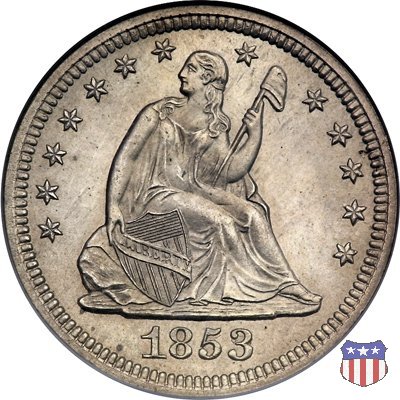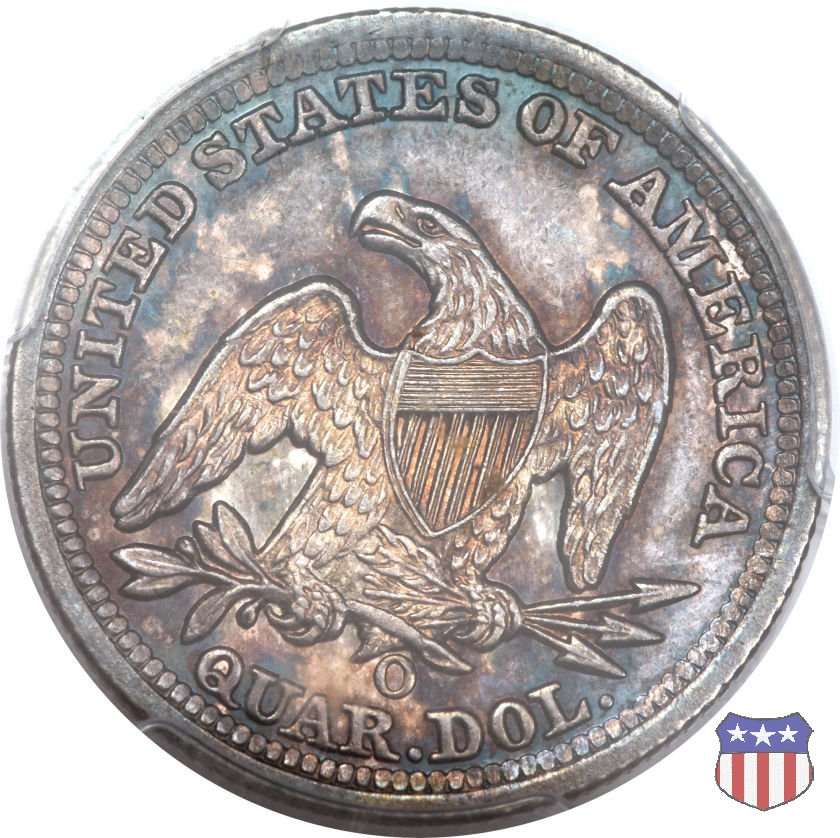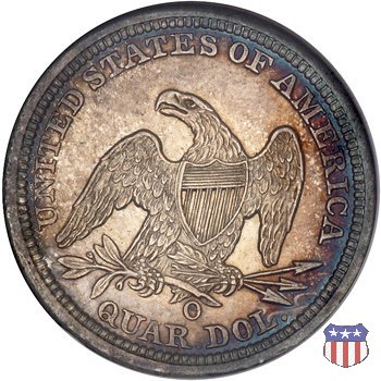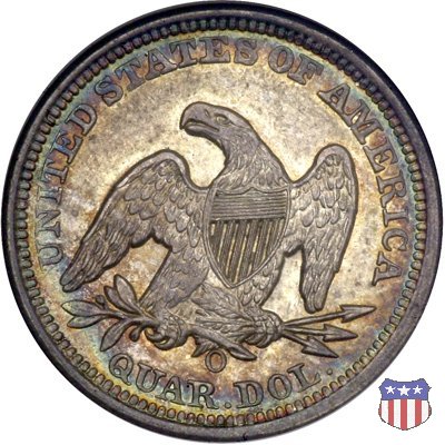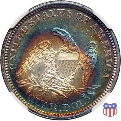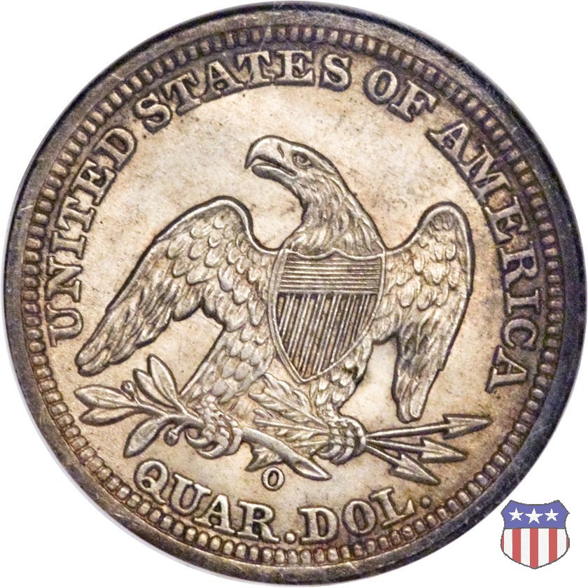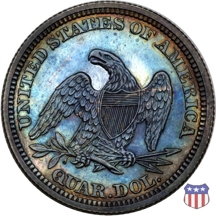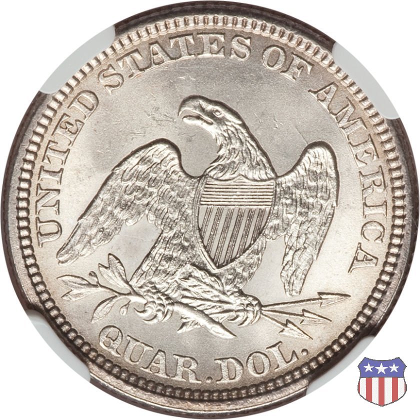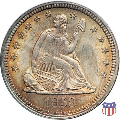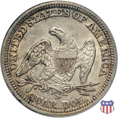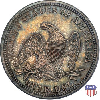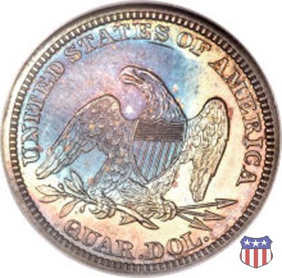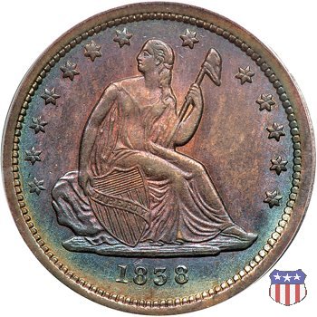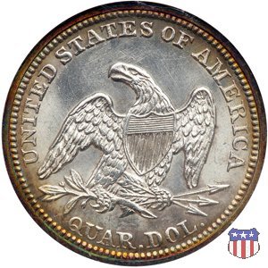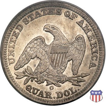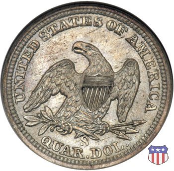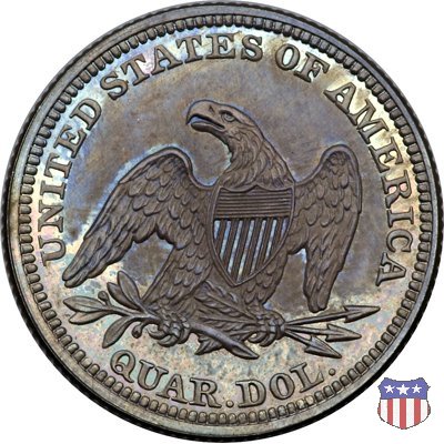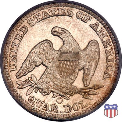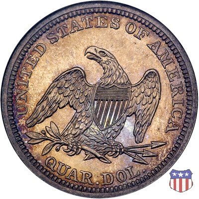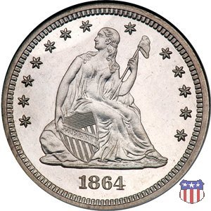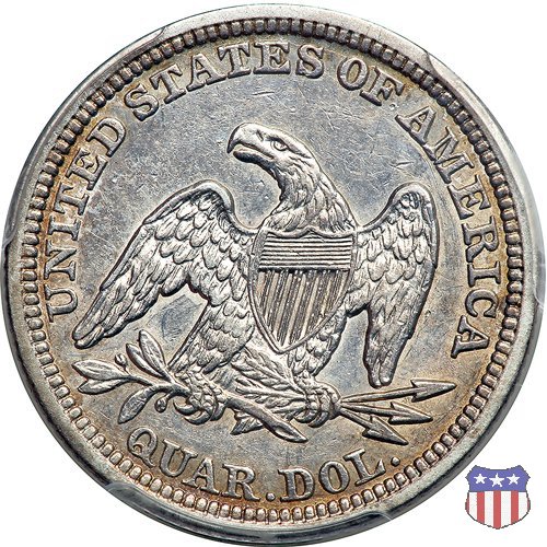 Il quarto di dollaro disegnato da Christian Gobrecht, porta al dritto la figura seduta di Lady Liberty da cui prende nome, vista per la prima volta sul dollaro 1836, e già usata sul dime dal 1837, e al rovescio quell'aquila con lo scudo sul petto che lo storico dell'arte Cornelius Vermeule descrisse come "la protezione di un arbitro di baseball". Ben cinque sono le varianti di questa moneta, che si distinguono per la presenza o meno del motto IN GOD WE TRUST, di due frecce ai lati della data, di raggi di sole al rovescio e, "dulcis in fundo", per una differenza di peso. La Variante 1, conosciuta come "No Motto Above Eagle", e coniata dal 1838 al 1853 al peso di 6,68 grammi, e dal 1856 al 1866 con un peso ridotto a 6,22 grammi (Variety 1 Resumed) è, dal punto di vista grafico, la piú semplice. Non c'è ancora il motto, non ci sono le frecce ai lati della data, che stanno a indicare il cambio di peso della moneta, e non ci sono i raggi al rovescio. Da segnalare tra le particolarità della serie la moneta del 1866 "No motto" uscita dalla Zecca di Philadelphia, senza che ve ne sia alcuna traccia nei registri. Prodotta con finitura "proof" questa moneta è conosciuta in un unico esemplare, che molti considerano una sorta di "pattern" di transizione tra le monete senza motto e quelle col motto, che proprio nel 1866 iniziarono a essere coniate regolarmente, mentre altri ritengono che sia stata coniata anni dopo, su iniziativa "autonoma" di qualche funzionario della Zecca (il che spiegherebbe l'assenza della moneta nei registri). Questa strana serie del 1866 "No motto" coniata a Philadelphia comprende anche il dollaro (due esemplari) e il mezzo dollaro (unico esemplare). Segno di zecca: - O New Orleans - S San Francisco - senza segno Philadelphia | ||||||||||||||||