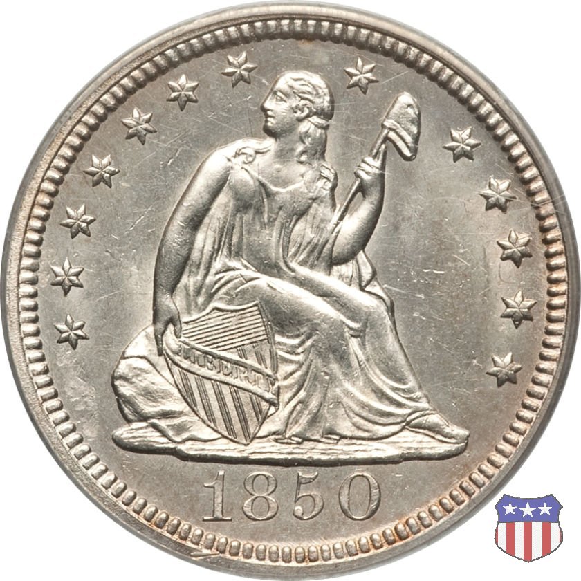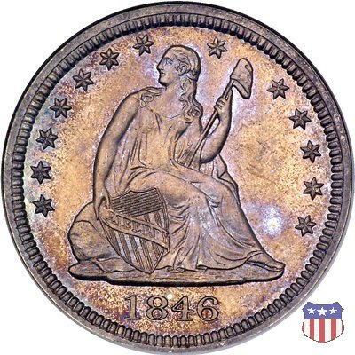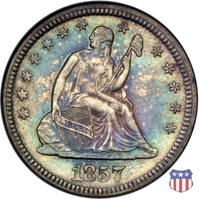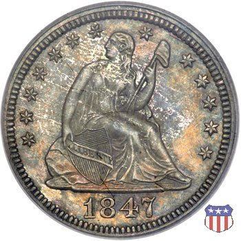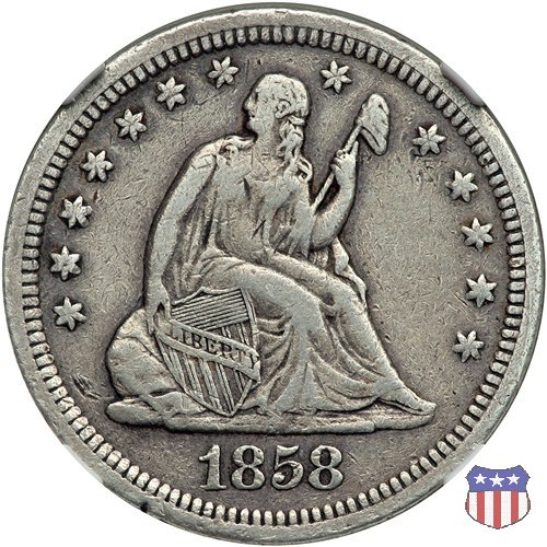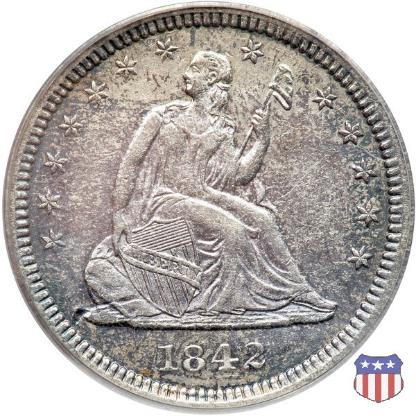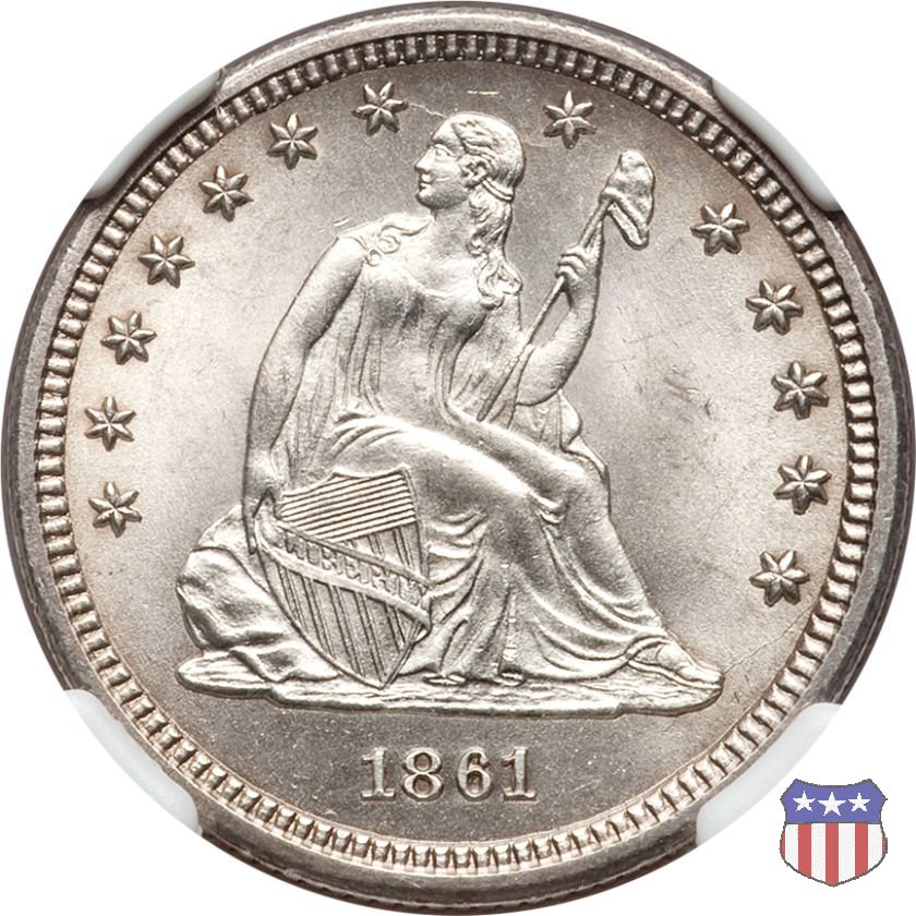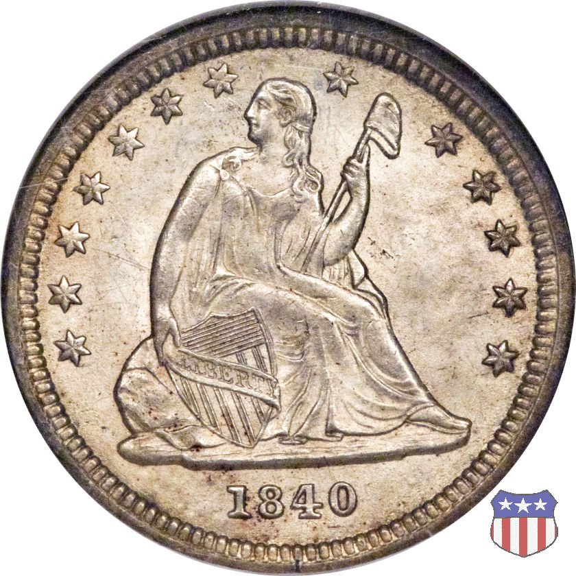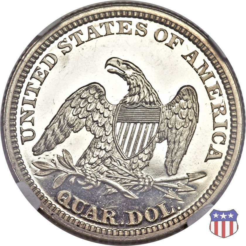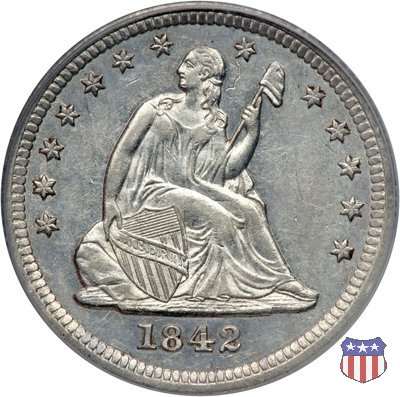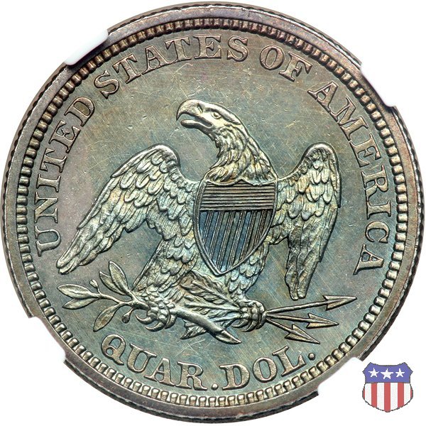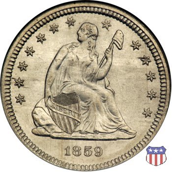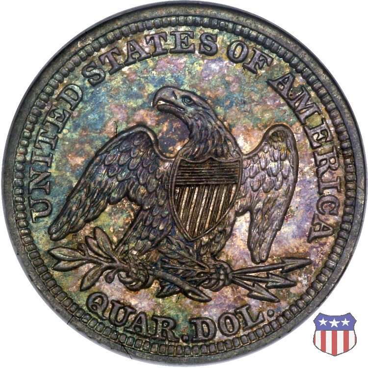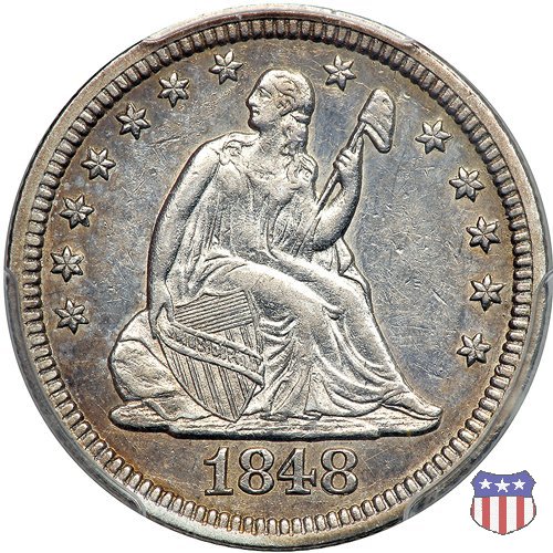 Il quarto di dollaro disegnato da Christian Gobrecht, porta al dritto la figura seduta di Lady Liberty da cui prende nome, vista per la prima volta sul dollaro 1836, e già usata sul dime dal 1837, e al rovescio quell'aquila con lo scudo sul petto che lo storico dell'arte Cornelius Vermeule descrisse come "la protezione di un arbitro di baseball". Ben cinque sono le varianti di questa moneta, che si distinguono per la presenza o meno del motto IN GOD WE TRUST, di due frecce ai lati della data, di raggi di sole al rovescio e, "dulcis in fundo", per una differenza di peso. La Variante 1, conosciuta come "No Motto Above Eagle", e coniata dal 1838 al 1853 al peso di 6,68 grammi, e dal 1856 al 1866 con un peso ridotto a 6,22 grammi (Variety 1 Resumed) è, dal punto di vista grafico, la piú semplice. Non c'è ancora il motto, non ci sono le frecce ai lati della data, che stanno a indicare il cambio di peso della moneta, e non ci sono i raggi al rovescio. Da segnalare tra le particolarità della serie la moneta del 1866 "No motto" uscita dalla Zecca di Philadelphia, senza che ve ne sia alcuna traccia nei registri. Prodotta con finitura "proof" questa moneta è conosciuta in un unico esemplare, che molti considerano una sorta di "pattern" di transizione tra le monete senza motto e quelle col motto, che proprio nel 1866 iniziarono a essere coniate regolarmente, mentre altri ritengono che sia stata coniata anni dopo, su iniziativa "autonoma" di qualche funzionario della Zecca (il che spiegherebbe l'assenza della moneta nei registri). Questa strana serie del 1866 "No motto" coniata a Philadelphia comprende anche il dollaro (due esemplari) e il mezzo dollaro (unico esemplare). Segno di zecca: - O New Orleans - S San Francisco - senza segno Philadelphia | ||||||||||||||||