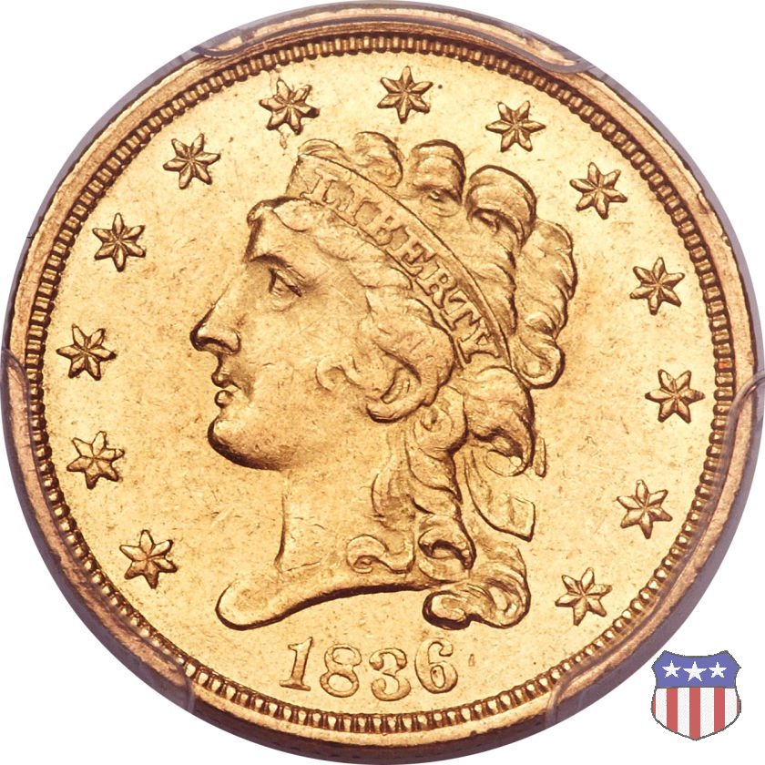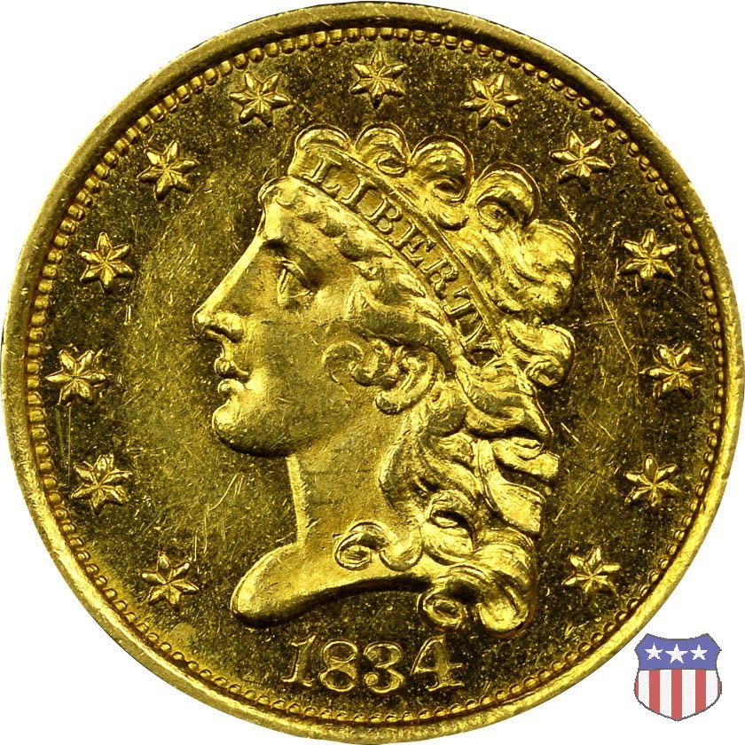 Nel 1834, dopo che una piccola parte di monete era stata coniata nella tipologia "Capped Head", il quarto di aquila venne ridisegnato da William Kneass, secondo "Chief-Engraver" della Zecca dal 1824 al 1840, anno della sua morte. Kneass disegna come Liberty una ragazza piú giovane dei modelli precedenti, con un nastro che lega i suoi lunghi, riccioluti, capelli. Al rovescio, riprende l'aquila di Reich, ad ali spiegate con scudo sul petto, eliminando però il motto E PLURIBUS UNUM. Gli stessi disegni, negli stessi anni, furono utilizzati da Kneass anche per le "Half Eagles".