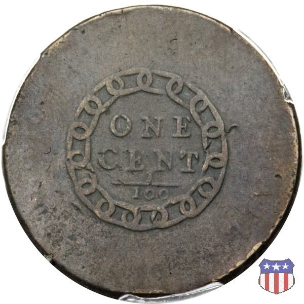 Il taglio da un centesimo fu tra i primi ad essere coniati dalla Zecca degli Stati Uniti. La prima tipologia di Large Cent, denominata "Flowing Hair - Chain Reverse" ebbe una vita molto breve a causa delle numerose critiche ricevute. In particolare non vennero apprezzati i basssi rilievi dei capelli e del ritratto di Lady Liberty, nonchè la catena presente al rovescio ritenuta un simbolo di schiavitu' ed oppressione invece che di unità, come era nelle intenzioni dell'autore. Esistono diverse rare varianti di questa tipologia, anche per quanto concerne la composizione della legenda al rovescio.