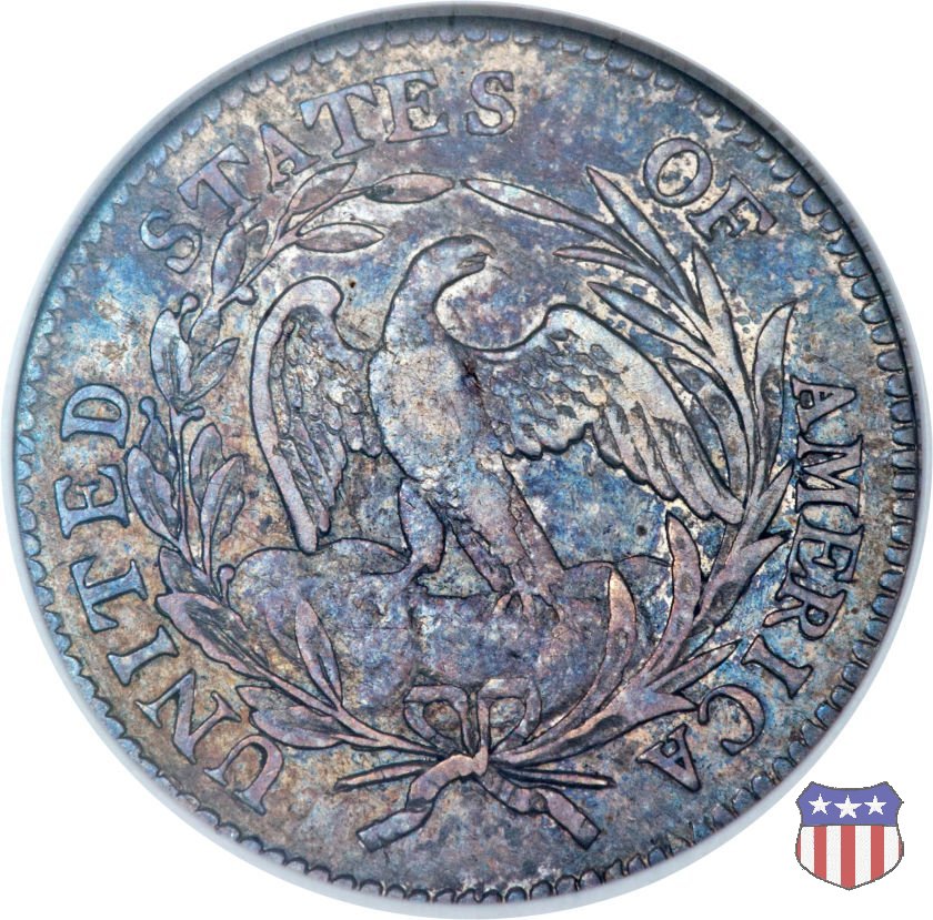 | Per la prima moneta da un dime, 10 centesimi di dollaro, Robert Scot, incisore-capo della Zecca di Philadelphia, utilizzò gli stessi disegni delle altre monete d'argento da lui create: disegni che, probabilmente, erano opera di Gilbert Stuart. Lady Liberty è una formosa matrona, dai lunghi capelli arricciati appena contenuti dal nastro e dal fiocco, mentre l'aquila al rovescio ha ben poco di naturale, e anche di maestoso, tanto che sarà presto sostituita dal modello araldico. | ||||||||
