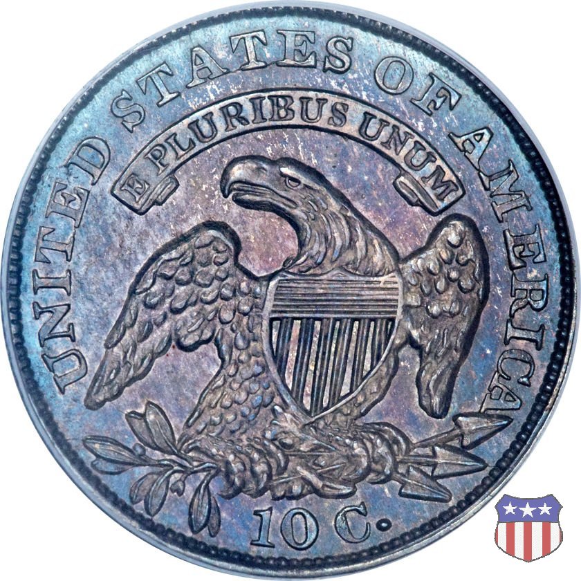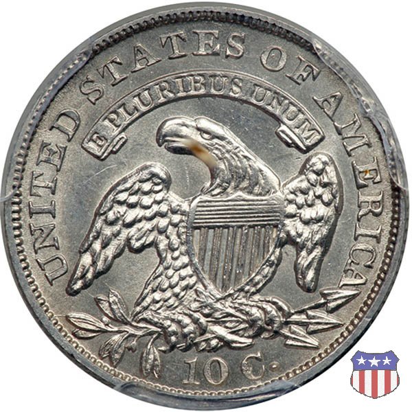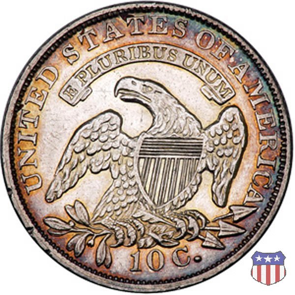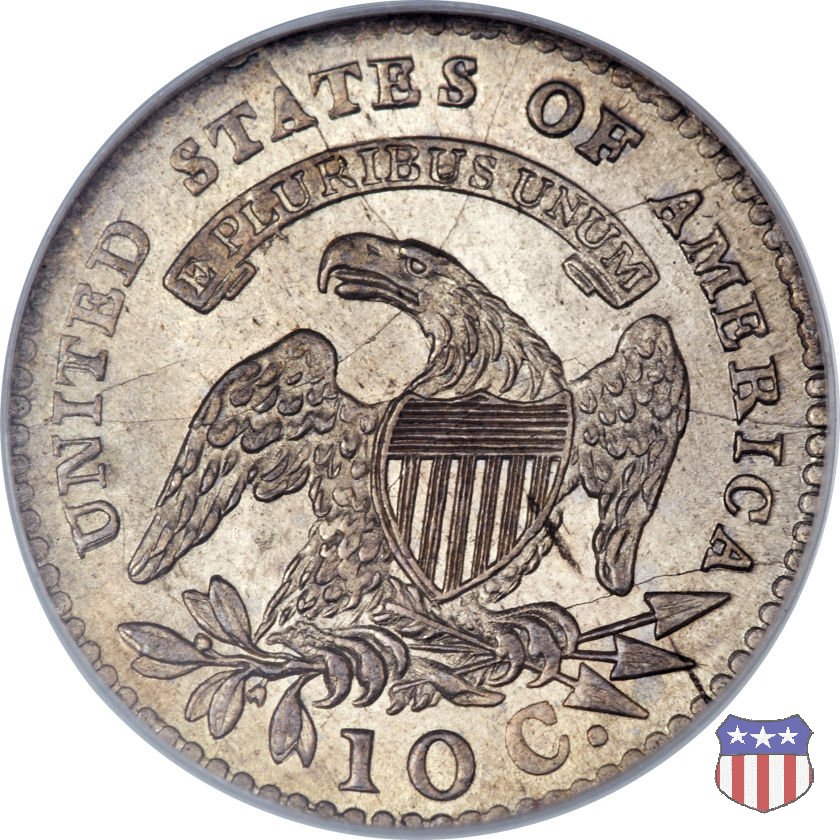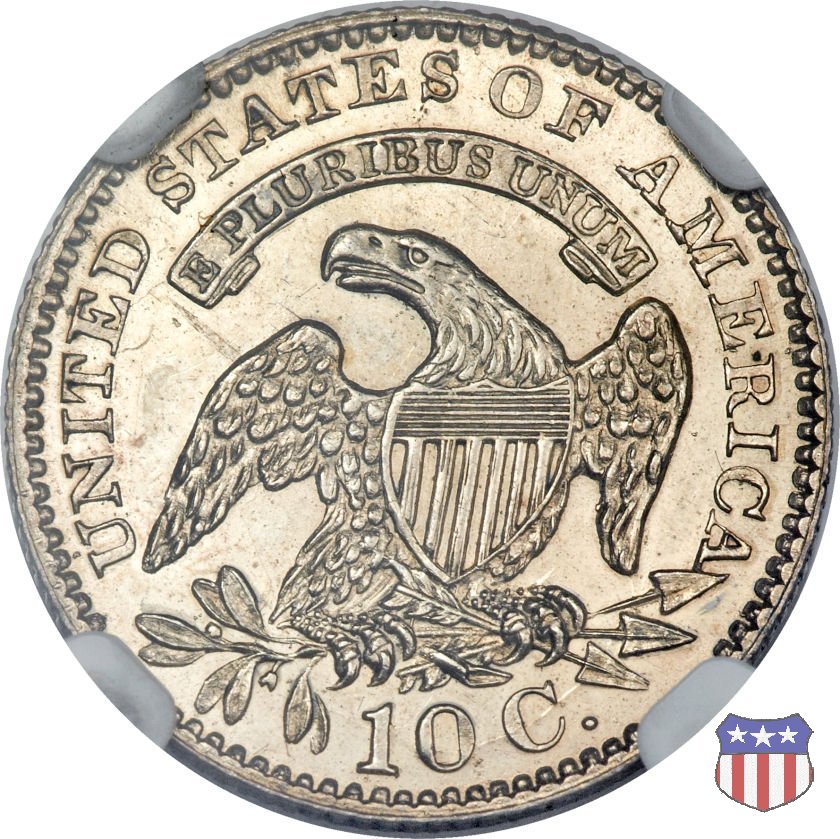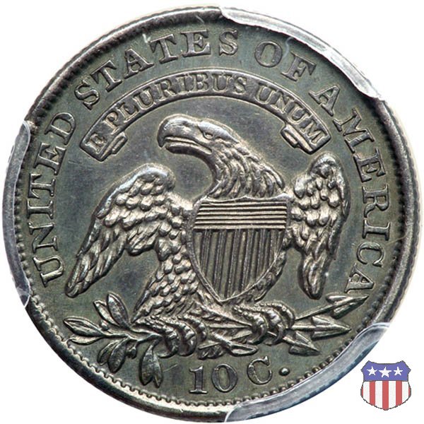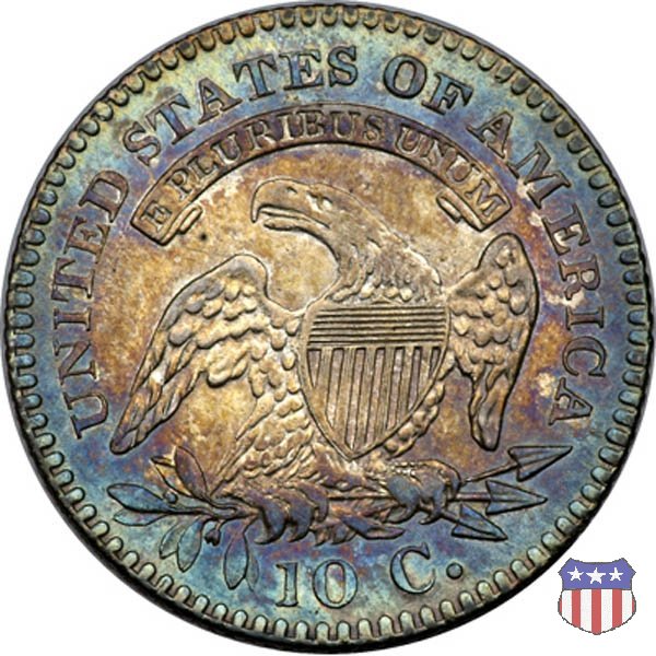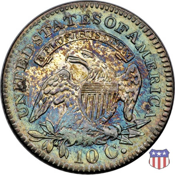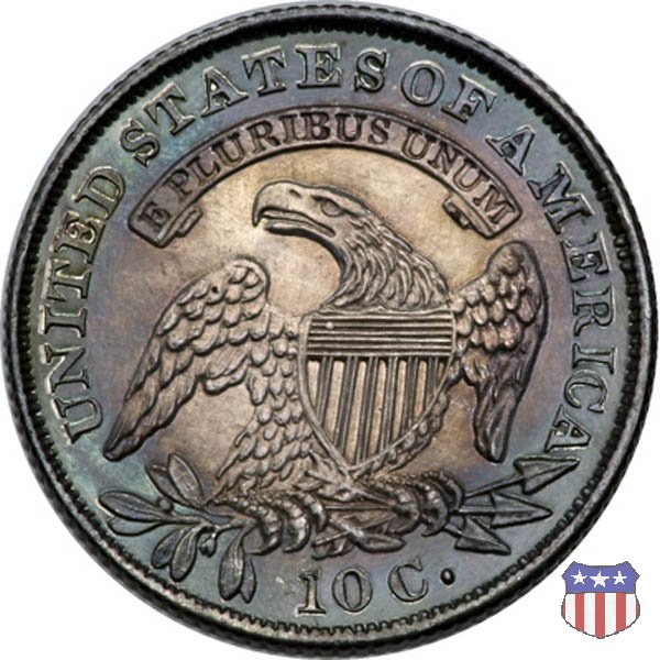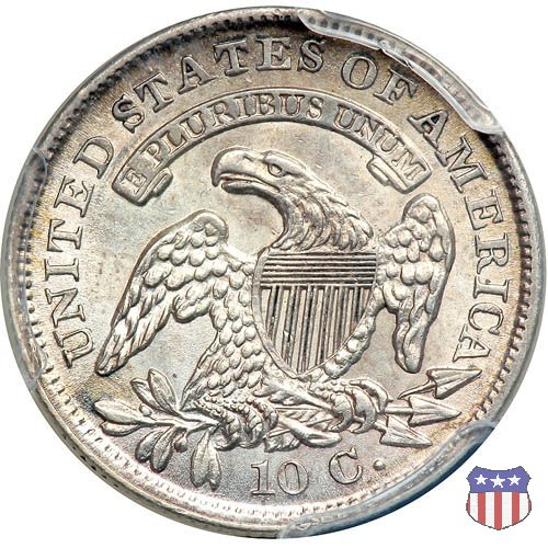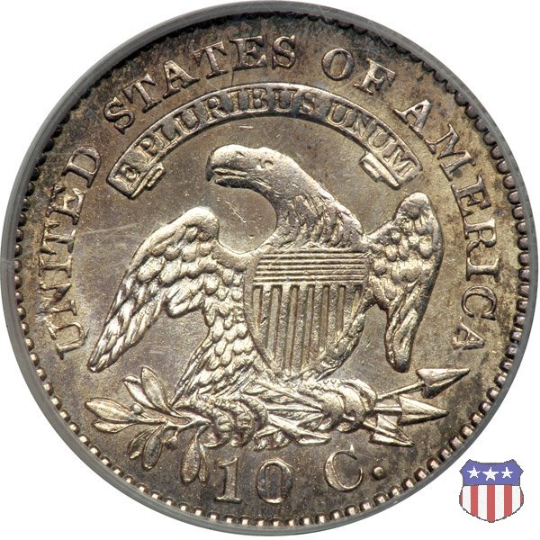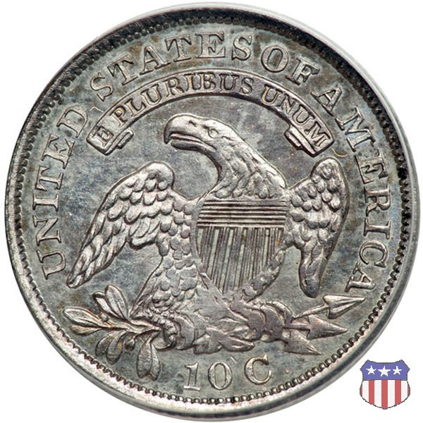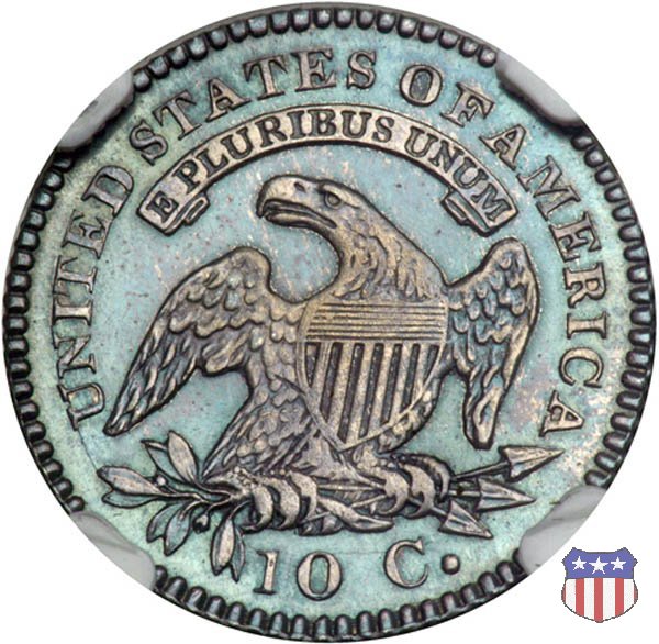 Busto drappeggiato di Lady Liberty volto a sinistra, che indossa un cappello frigio con l'iscrizione LIBERTY sulla fascia. Nel giro 13 stelle, 7 a sinistra e 6 a destra, in basso la data. Le monete, tutte coniate a Philadelphia, non presentano segni di zecca. Aquila ad ali spiegate, con scudo sul petto, che stringe un ramo d'ulivo nel suo artiglio destro, e un mazzo di frecce nel sinistro. Al disopra di essa, un cartiglio col motto E PLURIBUS UNUM. Nel giro UNITED STATES OF AMERICA, in basso il valore, 10 C.