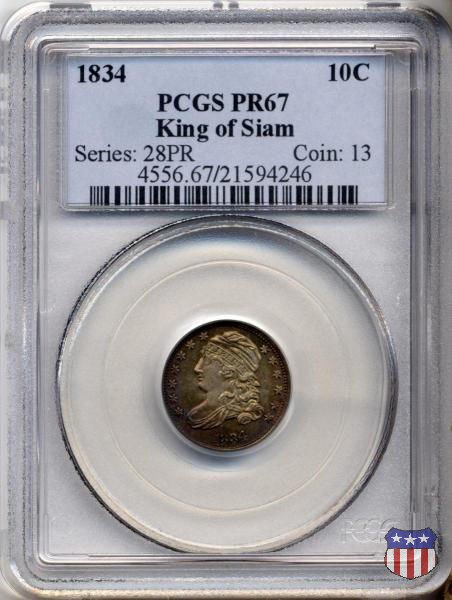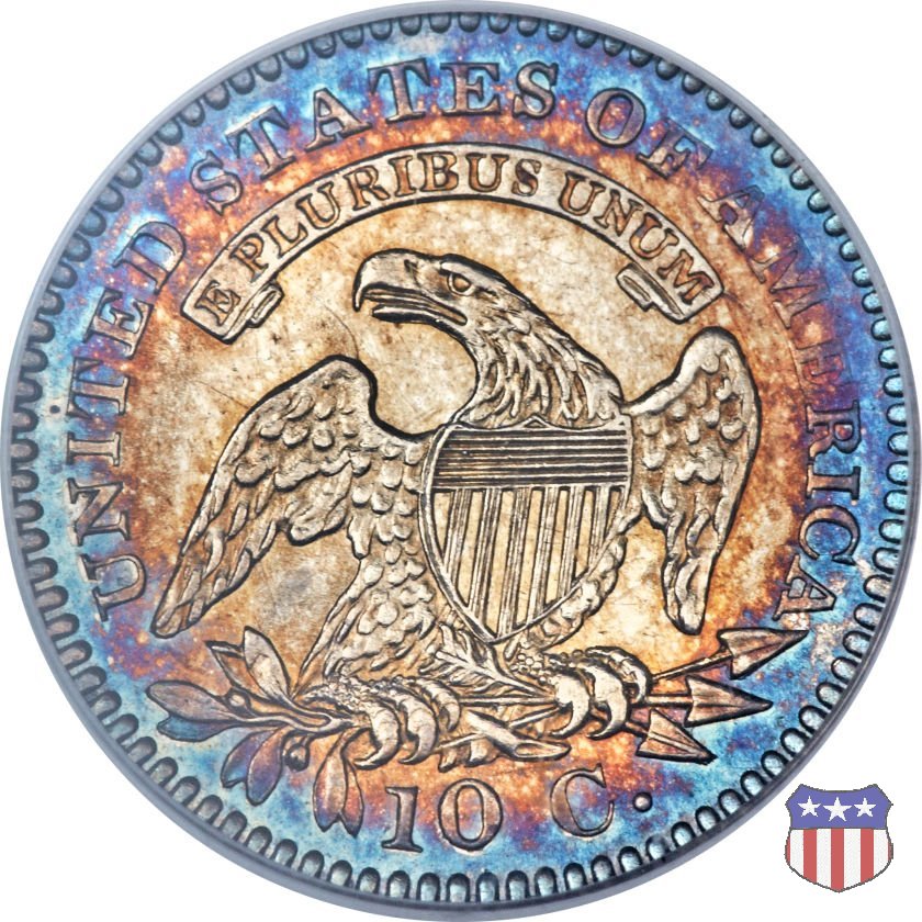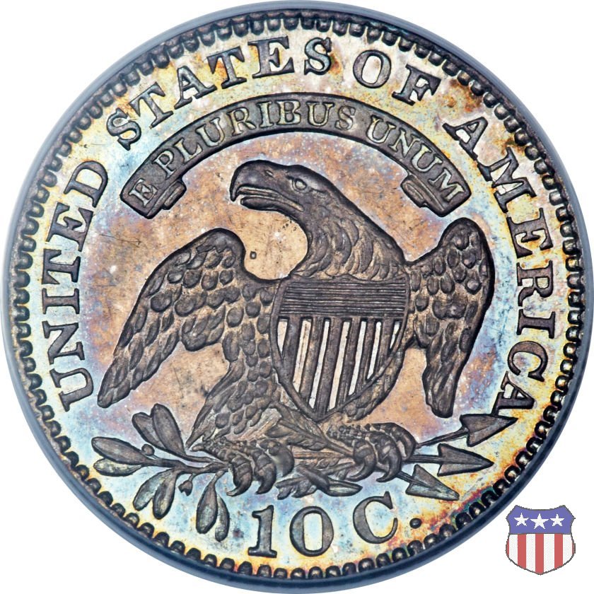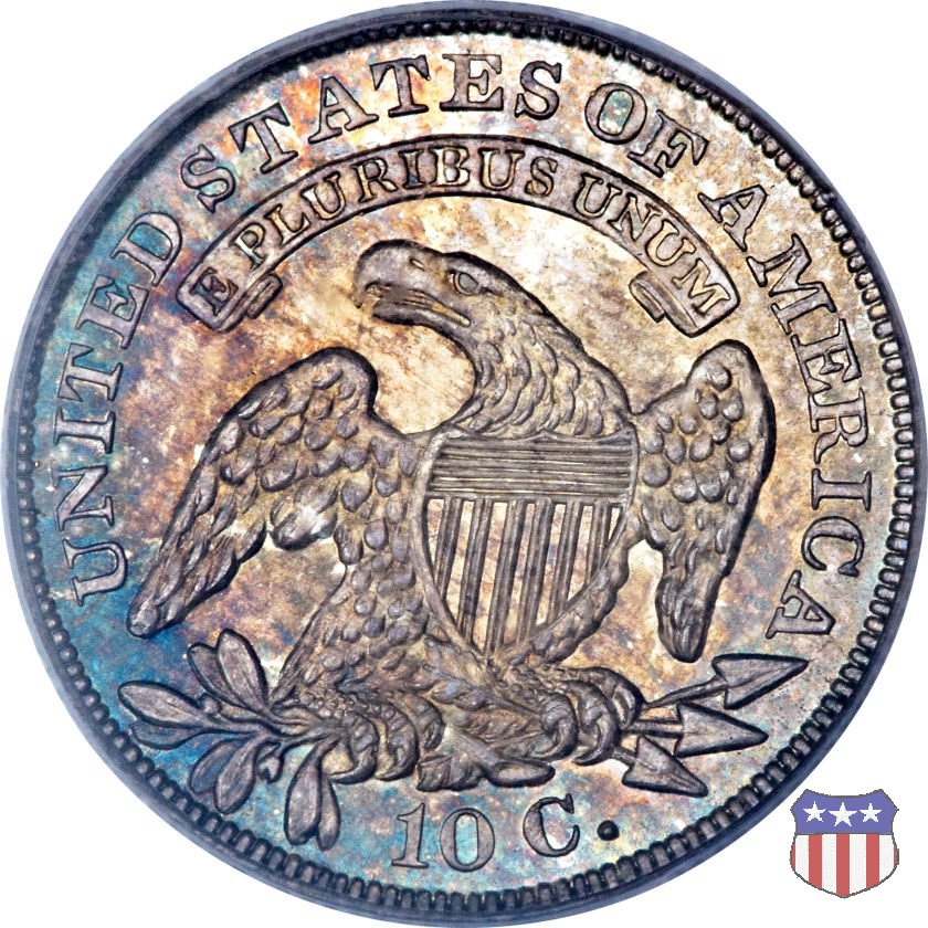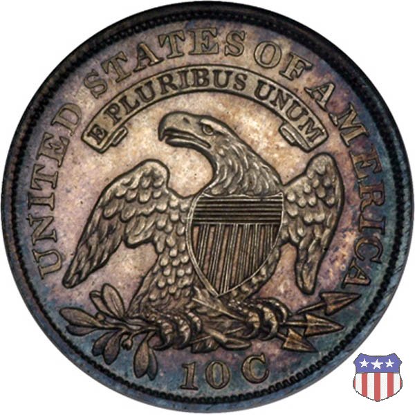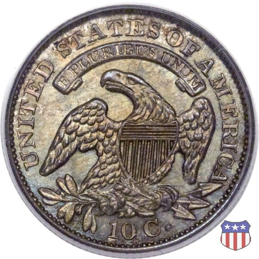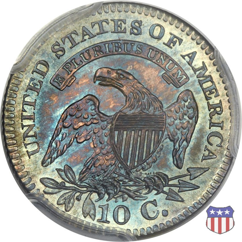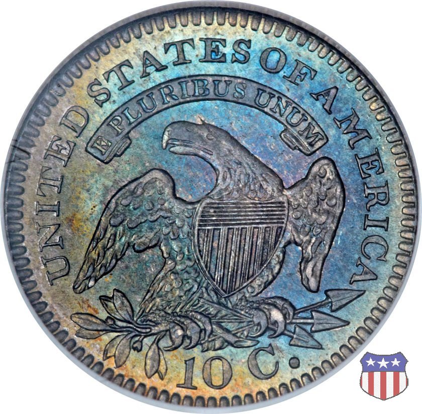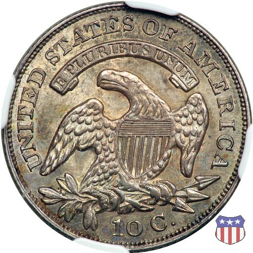 Busto drappeggiato di Lady Liberty volto a sinistra, che indossa un cappello frigio con l'iscrizione LIBERTY sulla fascia. Nel giro 13 stelle, 7 a sinistra e 6 a destra, in basso la data. Le monete, tutte coniate a Philadelphia, non presentano segni di zecca. Aquila ad ali spiegate, con scudo sul petto, che stringe un ramo d'ulivo nel suo artiglio destro, e un mazzo di frecce nel sinistro. Al disopra di essa, un cartiglio col motto E PLURIBUS UNUM. Nel giro UNITED STATES OF AMERICA, in basso il valore, 10 C.