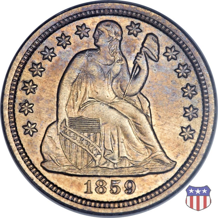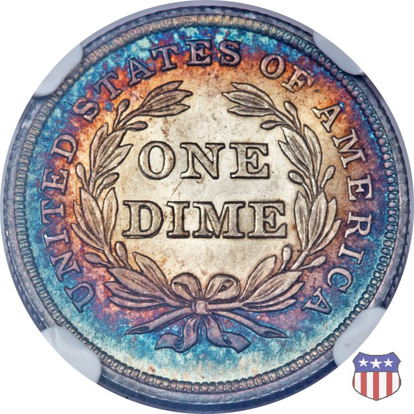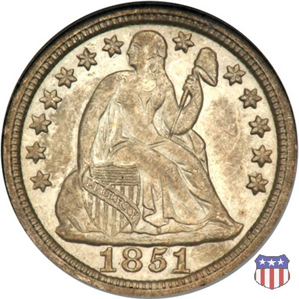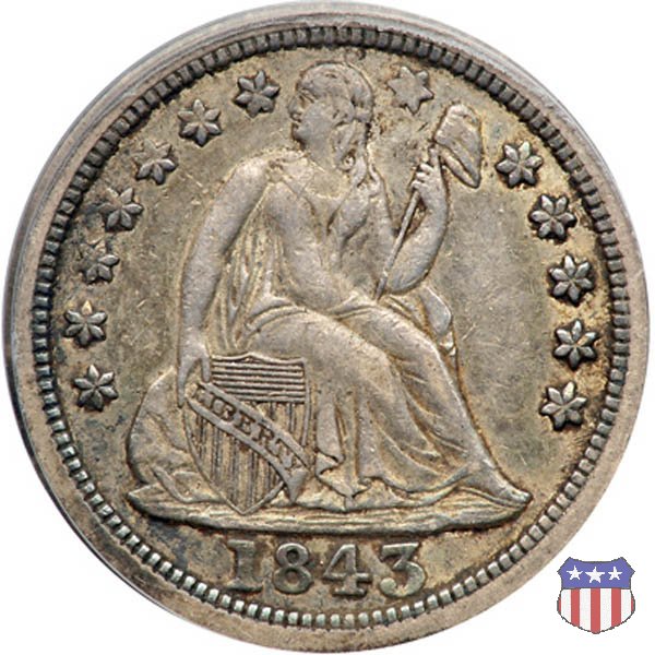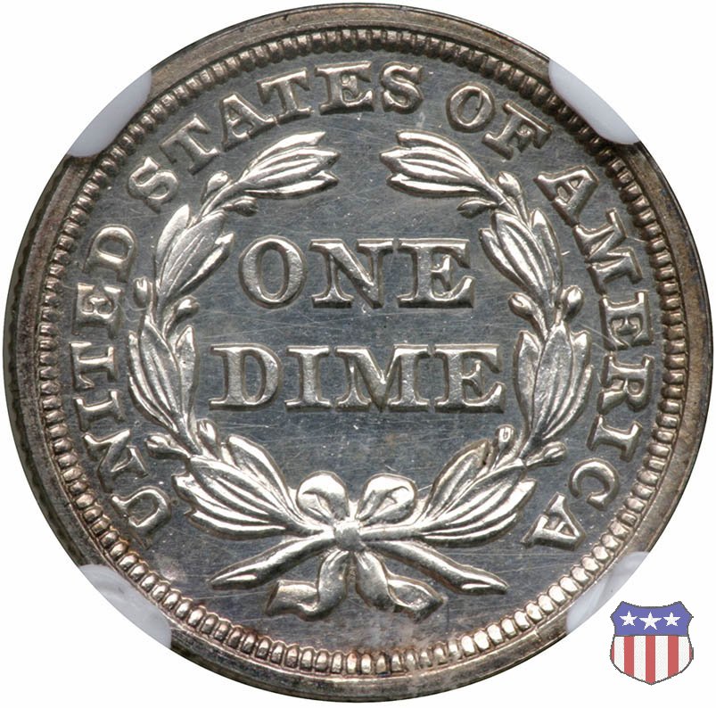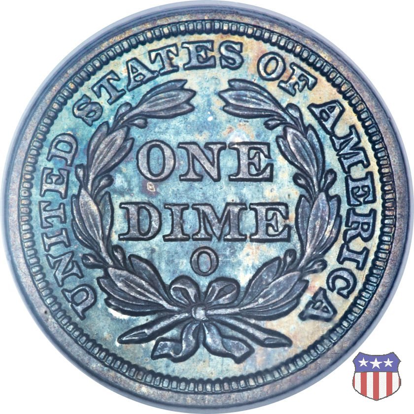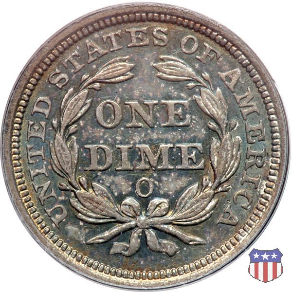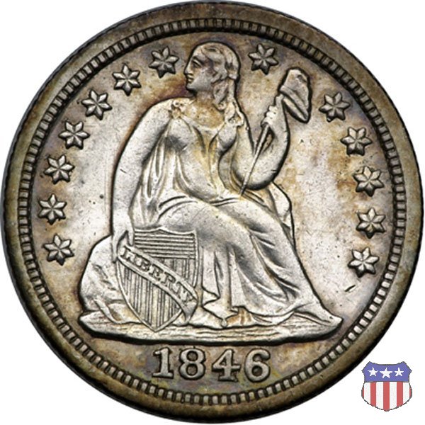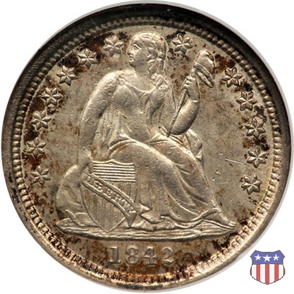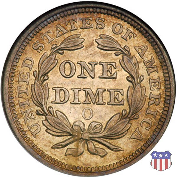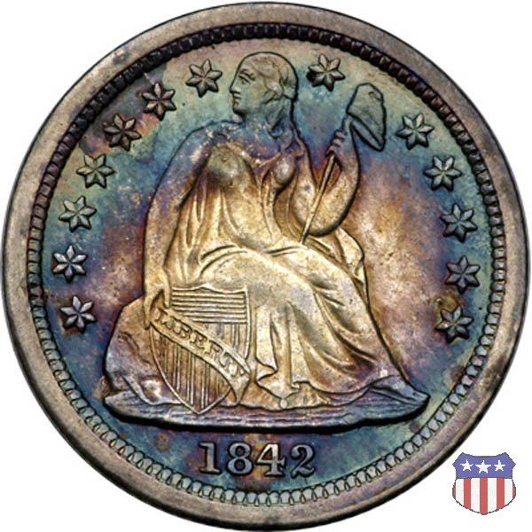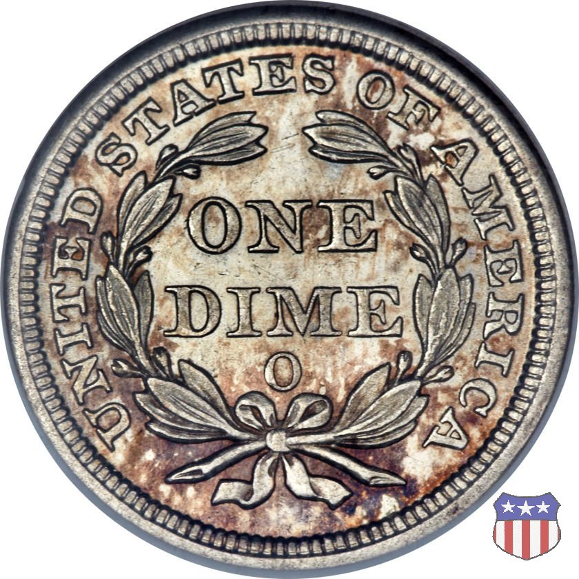 Il dime disegnato da Christian Gobrecht, porta al dritto la figura seduta di Lady Liberty da cui prende nome, vista per la prima volta sul dollaro 1836, e al rovescio il valore, scritto per la prima volta nella forma ONE DIME, all'interno di una corona. Ben cinque sono le varianti di questa moneta, che si distinguono per la presenza o meno delle stelle al dritto, di due frecce ai lati della data, della legenda UNITED STATES OF AMERICA che passa dal rovescio al dritto, per la forma della corona e, "dulcis in fundo", per una differenza di peso. La Variante 2, conosciuta come "Stars on Obverse" vede l'aggiunta nel giro del dritto delle tradizionali 13 stelle, mancanti nella Variante 1. E' stata coniata dal 1838 al 1853 al peso di 2,67 grammi, e dal 1856 al 1860 al peso ridotto di 2,49 grammi (Variety 2 Resumed). Segno di zecca: - O New Orleans - S San Francisco - senza segno Philadelphia | ||||||||||||||