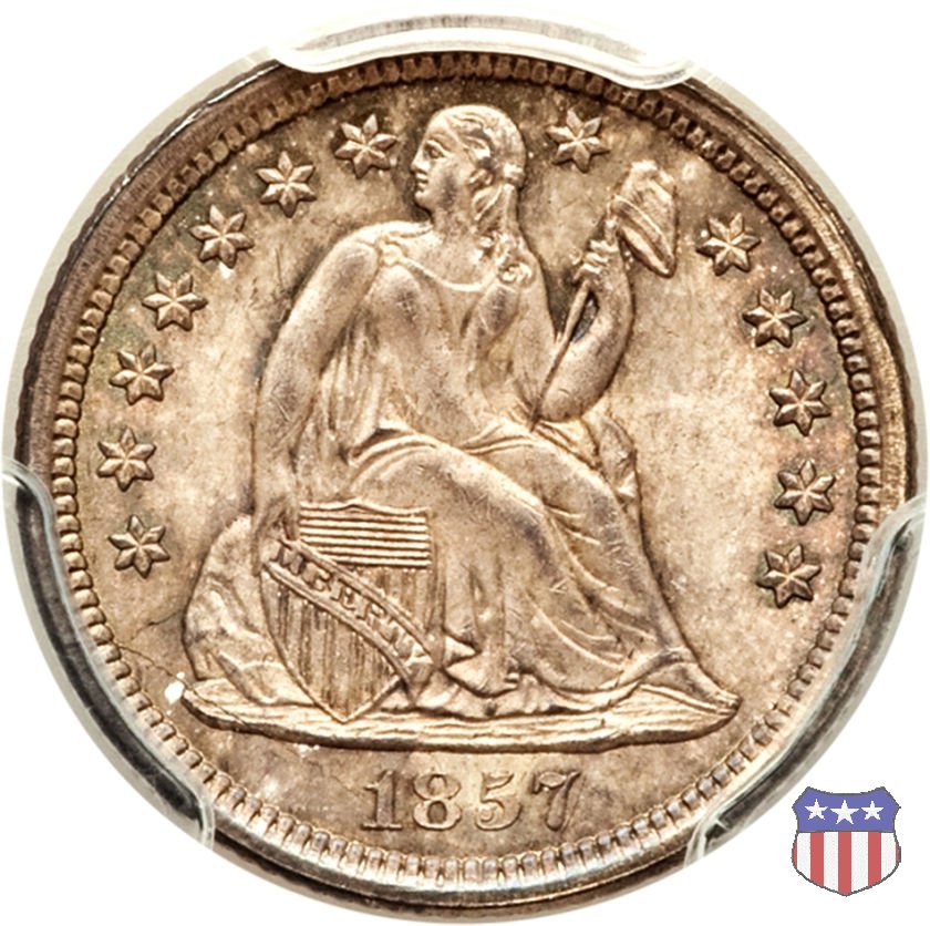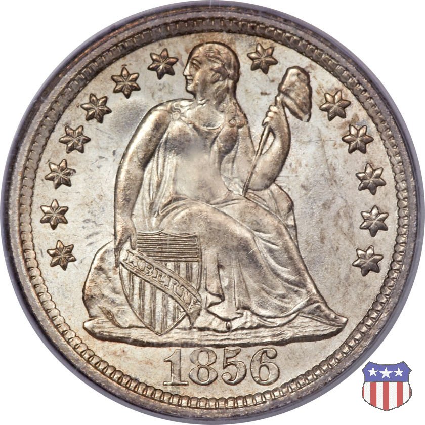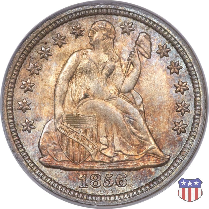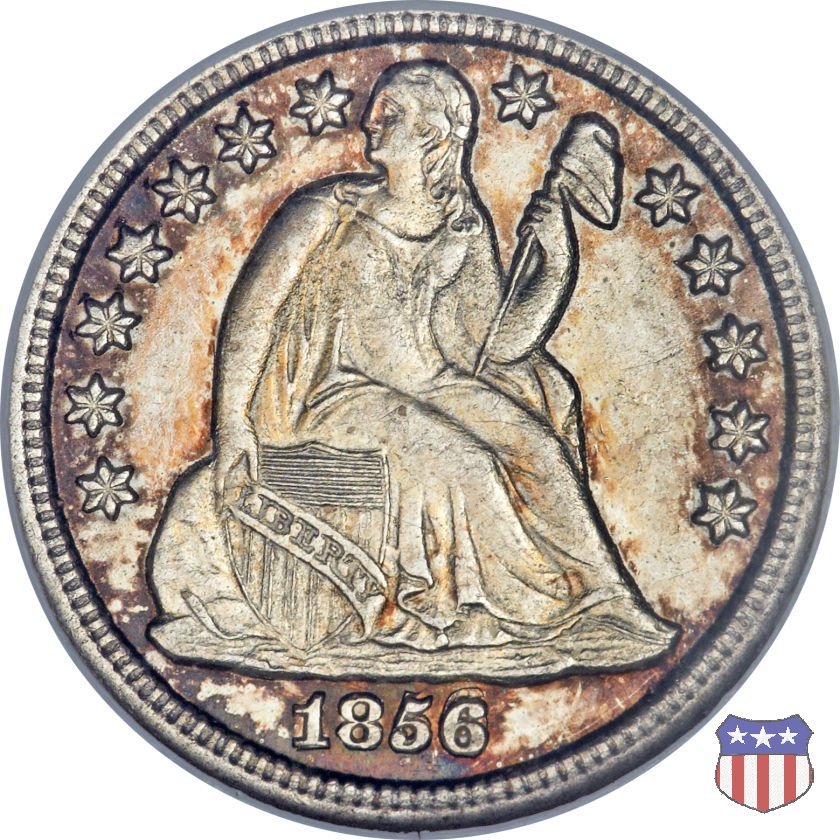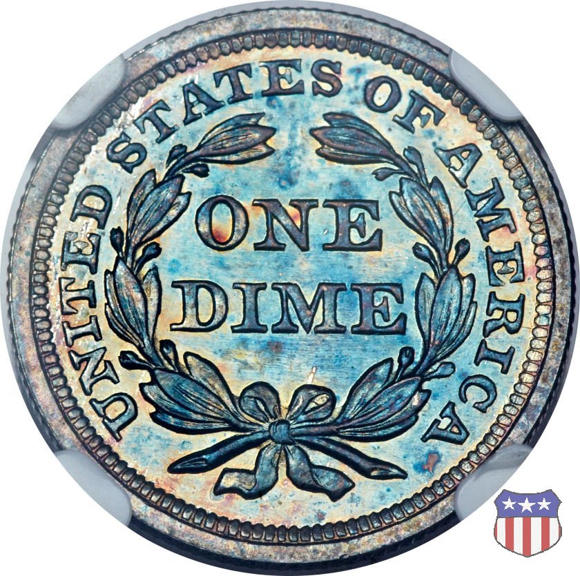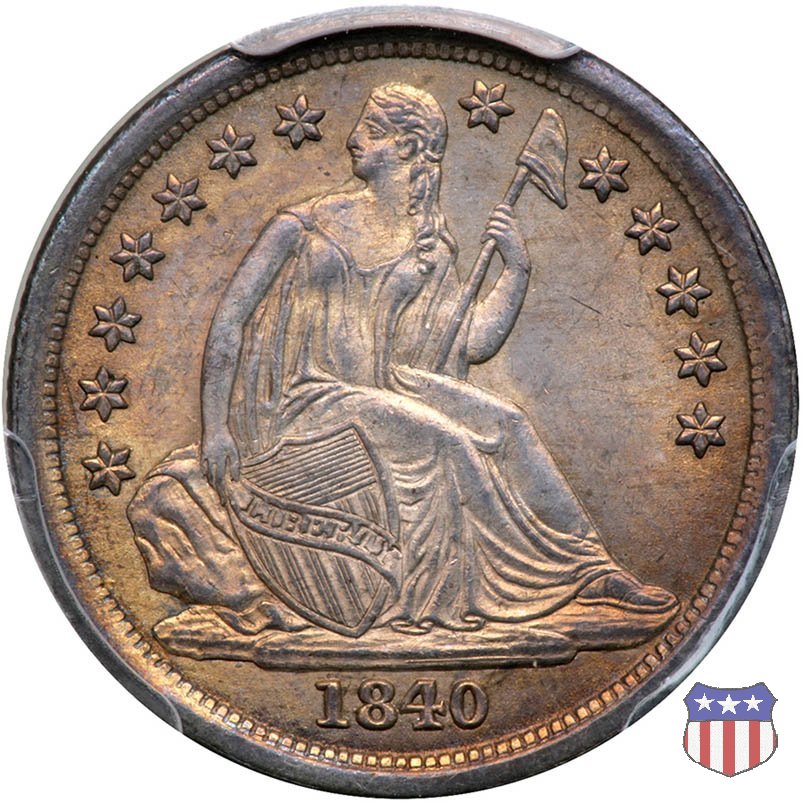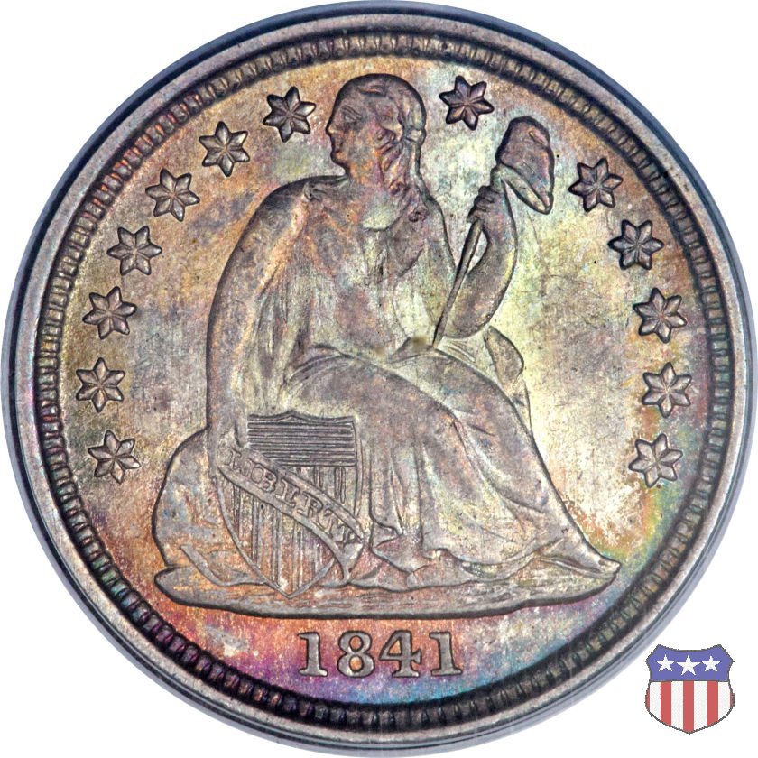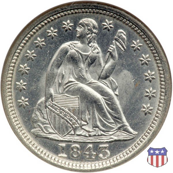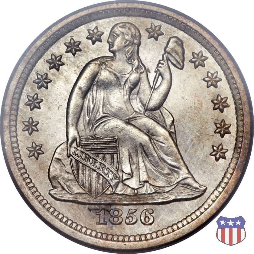Il dime disegnato da Christian Gobrecht, porta al dritto la figura seduta di Lady Liberty da cui prende nome, vista per la prima volta sul dollaro 1836, e al rovescio il valore, scritto per la prima volta nella forma ONE DIME, all'interno di una corona. Ben cinque sono le varianti di questa moneta, che si distinguono per la presenza o meno delle stelle al dritto, di due frecce ai lati della data, della legenda UNITED STATES OF AMERICA che passa dal rovescio al dritto, per la forma della corona e, "dulcis in fundo", per una differenza di peso. La Variante 2, conosciuta come "Stars on Obverse" vede l'aggiunta nel giro del dritto delle tradizionali 13 stelle, mancanti nella Variante 1. E' stata coniata dal 1838 al 1853 al peso di 2,67 grammi, e dal 1856 al 1860 al peso ridotto di 2,49 grammi (Variety 2 Resumed). Segno di zecca: - O New Orleans - S San Francisco - senza segno Philadelphia | ||||||||||||||