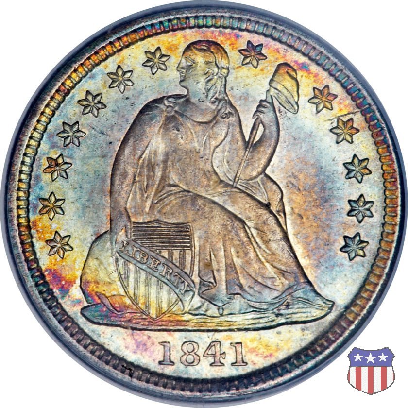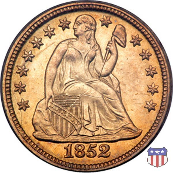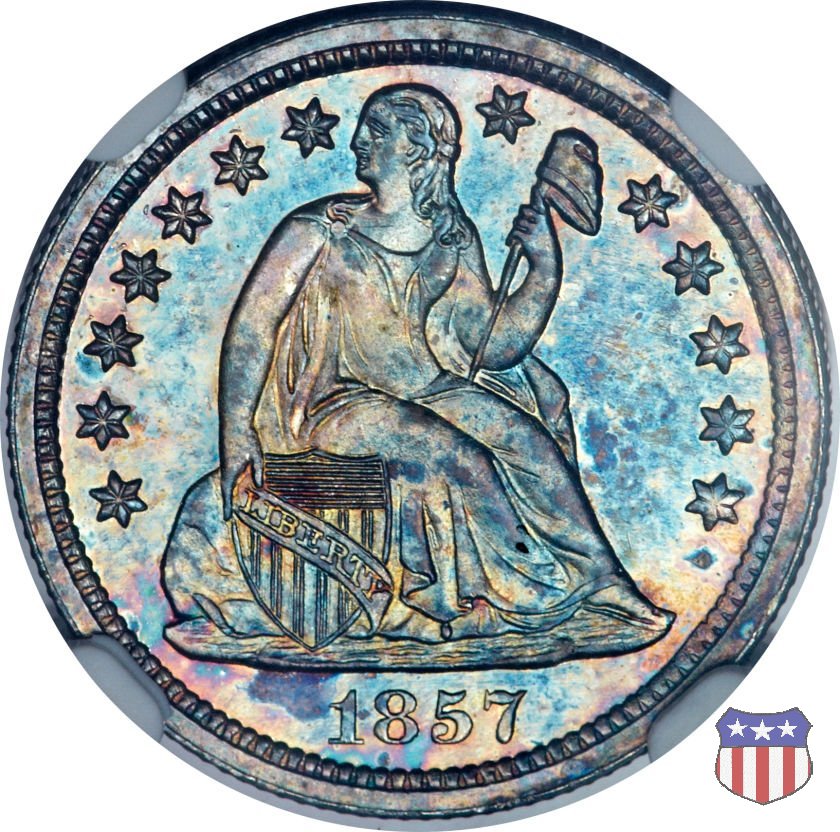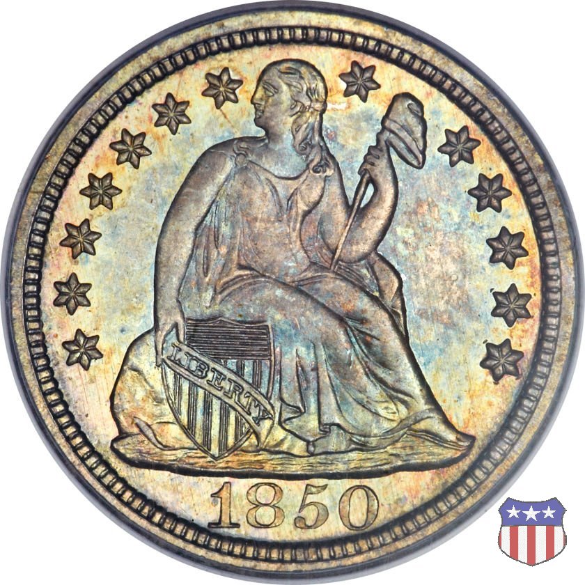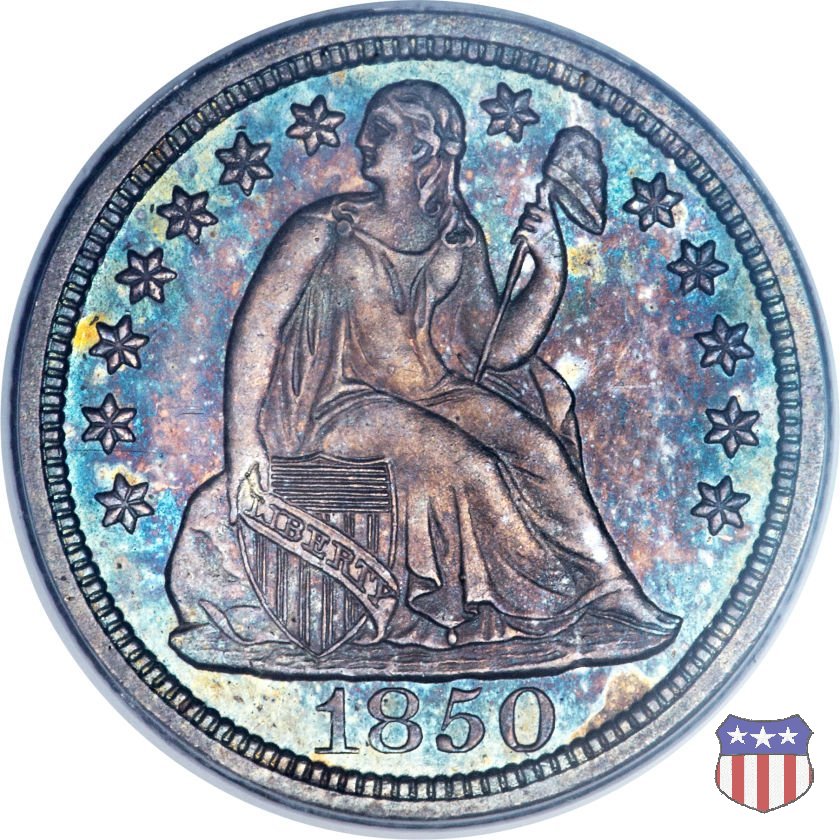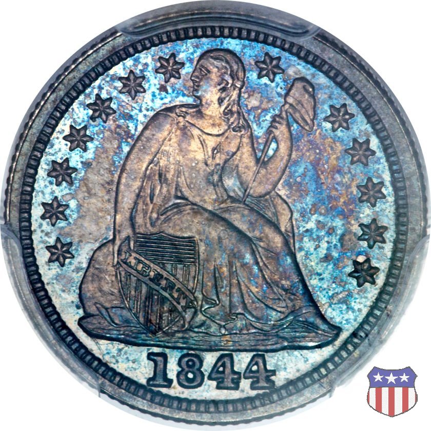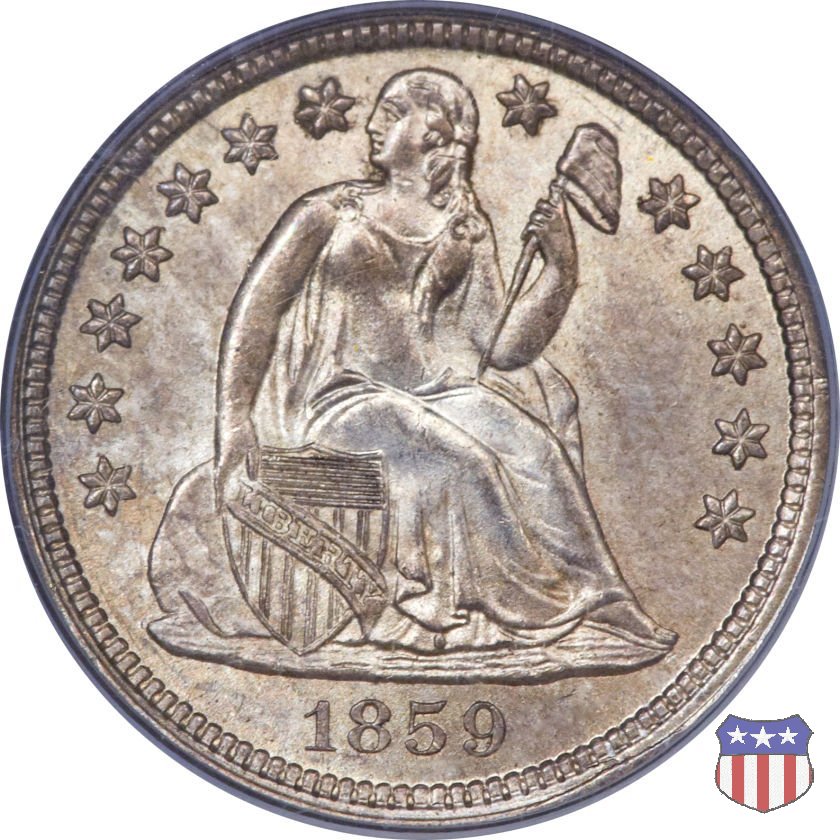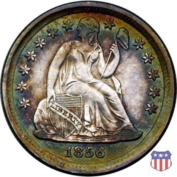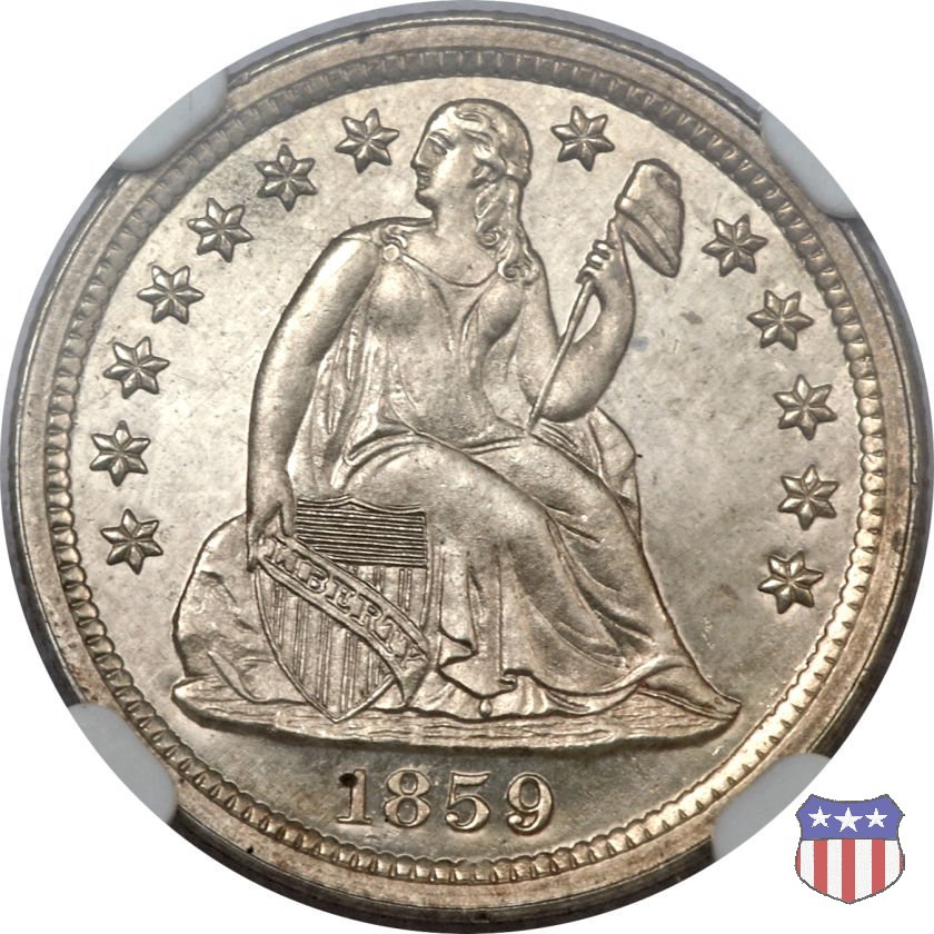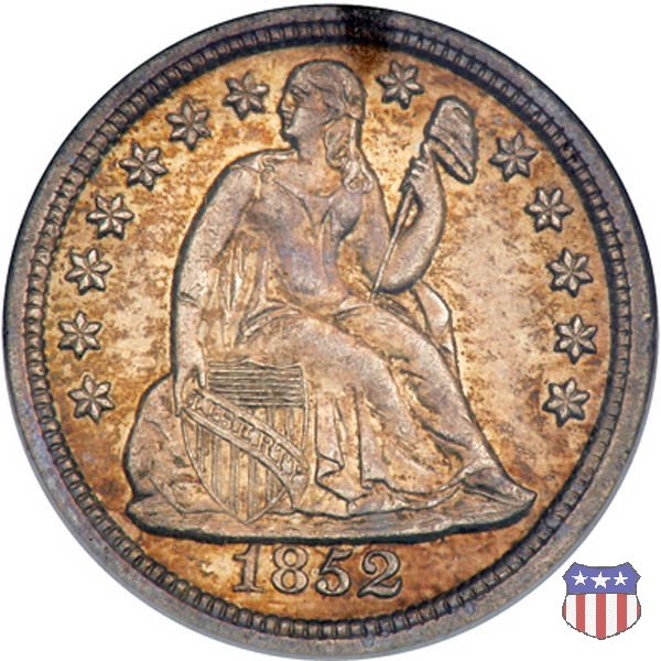 Il dime disegnato da Christian Gobrecht, porta al dritto la figura seduta di Lady Liberty da cui prende nome, vista per la prima volta sul dollaro 1836, e al rovescio il valore, scritto per la prima volta nella forma ONE DIME, all'interno di una corona. Ben cinque sono le varianti di questa moneta, che si distinguono per la presenza o meno delle stelle al dritto, di due frecce ai lati della data, della legenda UNITED STATES OF AMERICA che passa dal rovescio al dritto, per la forma della corona e, "dulcis in fundo", per una differenza di peso. La Variante 2, conosciuta come "Stars on Obverse" vede l'aggiunta nel giro del dritto delle tradizionali 13 stelle, mancanti nella Variante 1. E' stata coniata dal 1838 al 1853 al peso di 2,67 grammi, e dal 1856 al 1860 al peso ridotto di 2,49 grammi (Variety 2 Resumed). Segno di zecca: - O New Orleans - S San Francisco - senza segno Philadelphia | ||||||||||||||