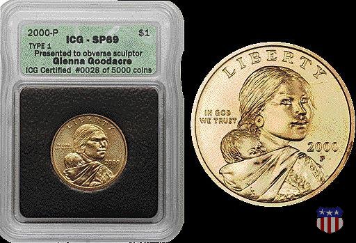 Nonostante il fiasco del Susan B. Anthony, il governo USA decise di riprovarci, e nel dicembre 1997 il presidente Clinton firmò il decreto per l'emissione di un nuovo dollaro. Si continuò con la strada già intrapresa, ovvero col dedicare la moneta a una significativa figura femminile della storia americana. La scelta cadde su Sacagawea (o Sacajawea), una ragazza shoshone entrata nella leggenda del West per aver fatto da guida e interprete alla spedizione di Lewis e Clark che, partiti da Pittsburgh, dal 1804 al 1806 traversarono per la prima volta l'intero continente nordamericano, fino a raggiungere il Pacifico. Stavolta però, anziché affidare il lavoro direttamente alla Zecca, venne bandito un concorso tra artisti, sia interni che esterni alla Zecca, e fu proprio uno di quest'ultimi, la scultrice del New Mexico Glenna Goodacre, a vincerlo, e a realizzare cosí il dritto della moneta, nel quale ritrasse Randy'L He-dow Teton, una ragazza della tribú Shoshone-Bannock della riserva di Fort Hall, nel sudest dell'Idaho, che quando posò per la moneta, nel 1998, aveva 22 anni. Scelta obbligata, quella di una modella, poiché della vera Sacagawea non esiste alcun tipo di ritratto. Glenna Goodacre chiese e ottenne di essere pagata con 5.000 pezzi della moneta datati 2000 e coniati a Philadelphia, prodotti appositamente per lei con una speciale finitura (Goodacre Presentation Finish).