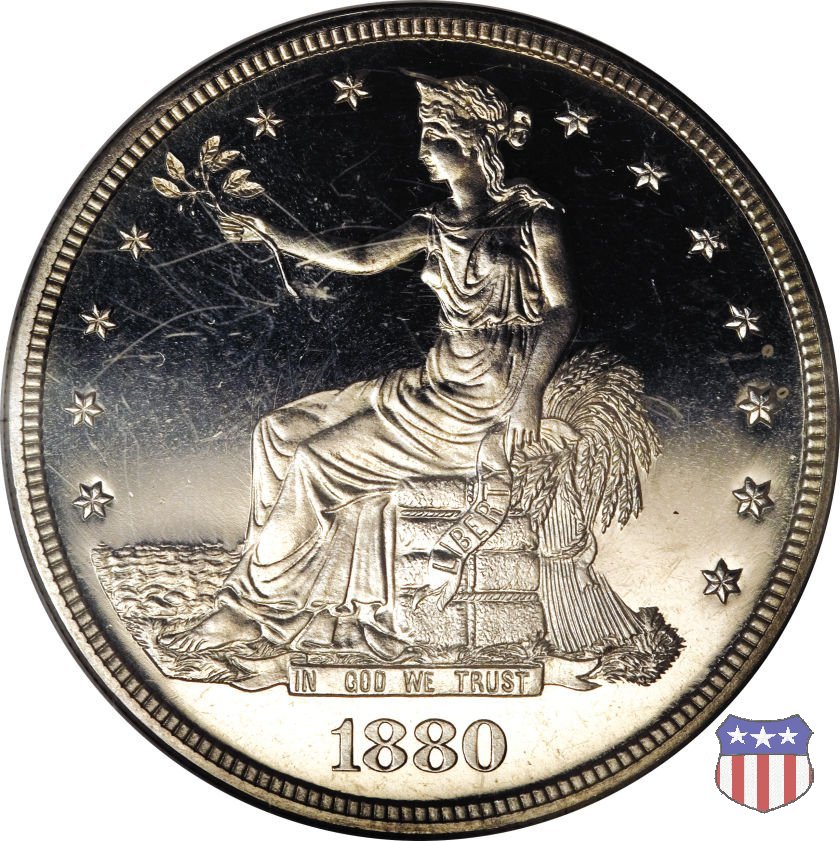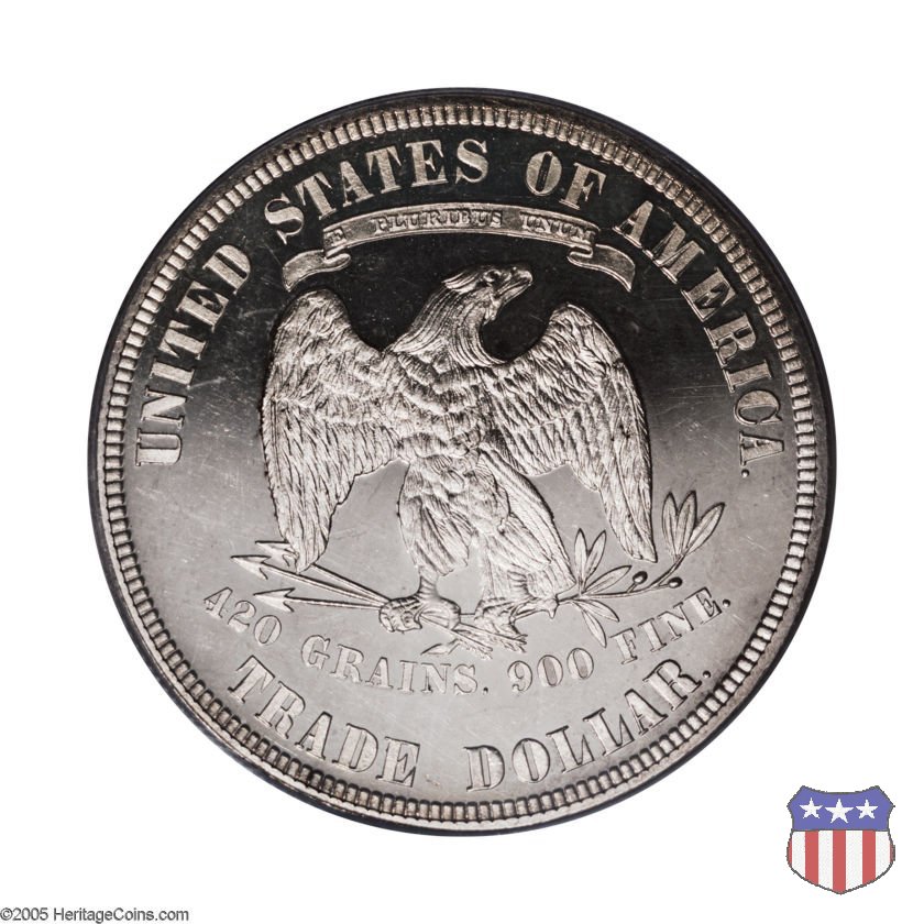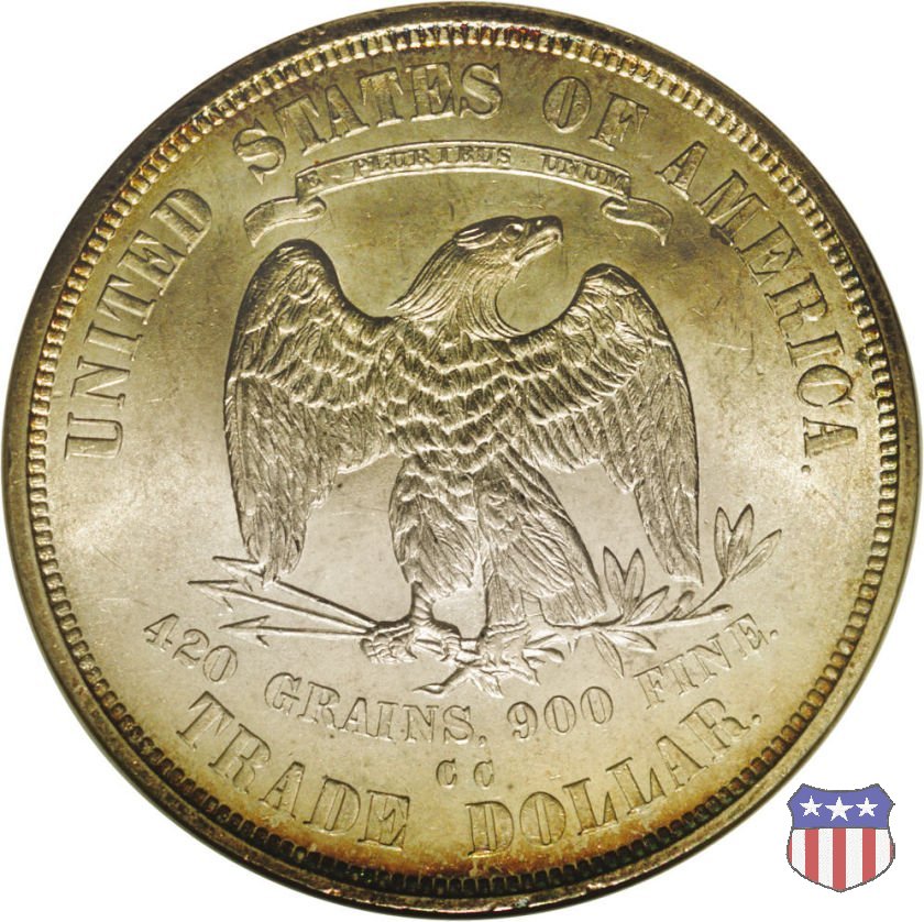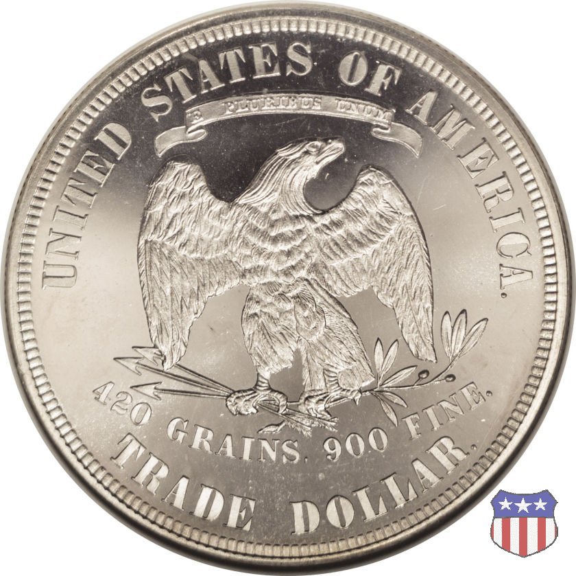 Queste monete furono emesse per facilitare i commerci con l'Estremo Oriente, dove avrebbero dovuto competere con le pezzature in argento di uguale modulo di altri paesi. Per questo, avevano un peso leggermente superiore a quello dei dollari d'argento prodotti fino a quel momento. Molti dei dollari che circolarono in Oriente vennero contromarcati con caratteri orientali, conosciuti come "chopmarks". Ebbero corso legale anche negli Stati Uniti, ma a metà degli anni 1870 il crollo del prezzo dell'argento portò il loro valore nominale a superare il valore del metallo, ponendoli di fatto fuori corso per la circolazione interna, tanto che le banche non accettarono piú di cambiarli per importi superiori a 5 dollari. Un fuori corso che venne ufficializzato con Atto del Congresso del 22 Luglio 1876, che dispose la perdita del corso legale per i Trade Dollars, unica moneta americana ad aver subito questa "onta", e la limitazione della loro produzione alle sole esigenze del mercato asiatico. Nel 1887, il Tesoro rimborsò poi tutti i Trade Dollars non contromarcati.