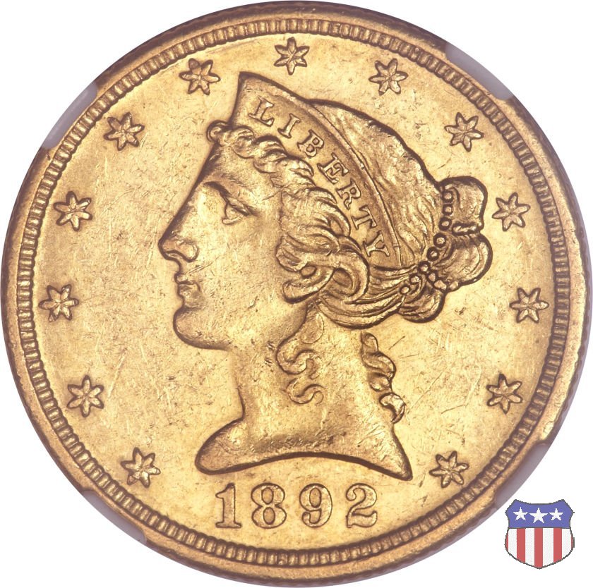 16495 Liberty Head, Motto above Eagle (1866-1908) (1892 - New Orleans)