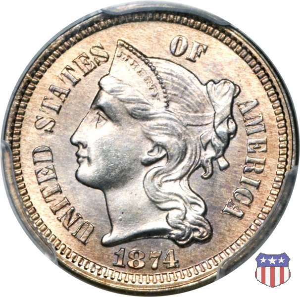 17946 Nickel Three Cent (1865-1889) (1874 - Philadelphia)
