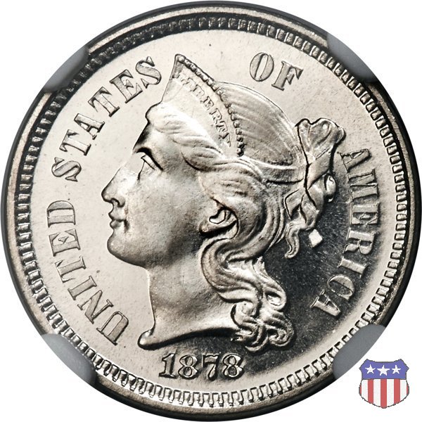 17959 Nickel Three Cent (1865-1889) (1878 - Philadelphia)
