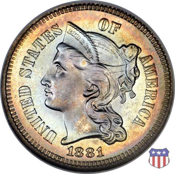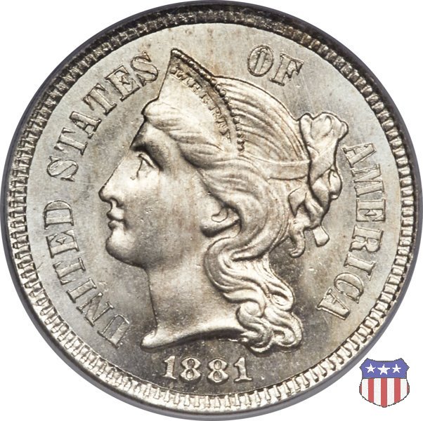 17970 Nickel Three Cent (1865-1889) (1881 - Philadelphia)